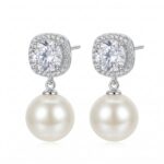 Be the first to review “925 Sterling Silver Elegant Square Halo CZ and White Pearl Drop Earrings”