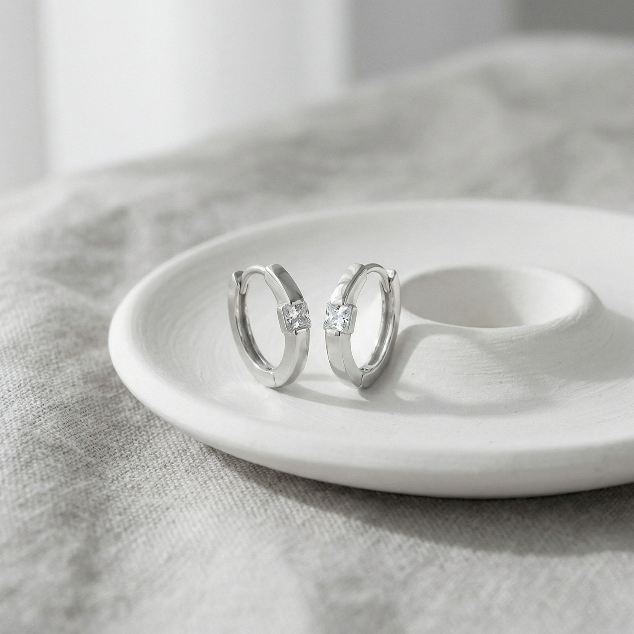 Be the first to review “925 Sterling Silver Elegant Sterling Silver Huggie Hoop Earrings with Square Cut Cubic Zirconia”
