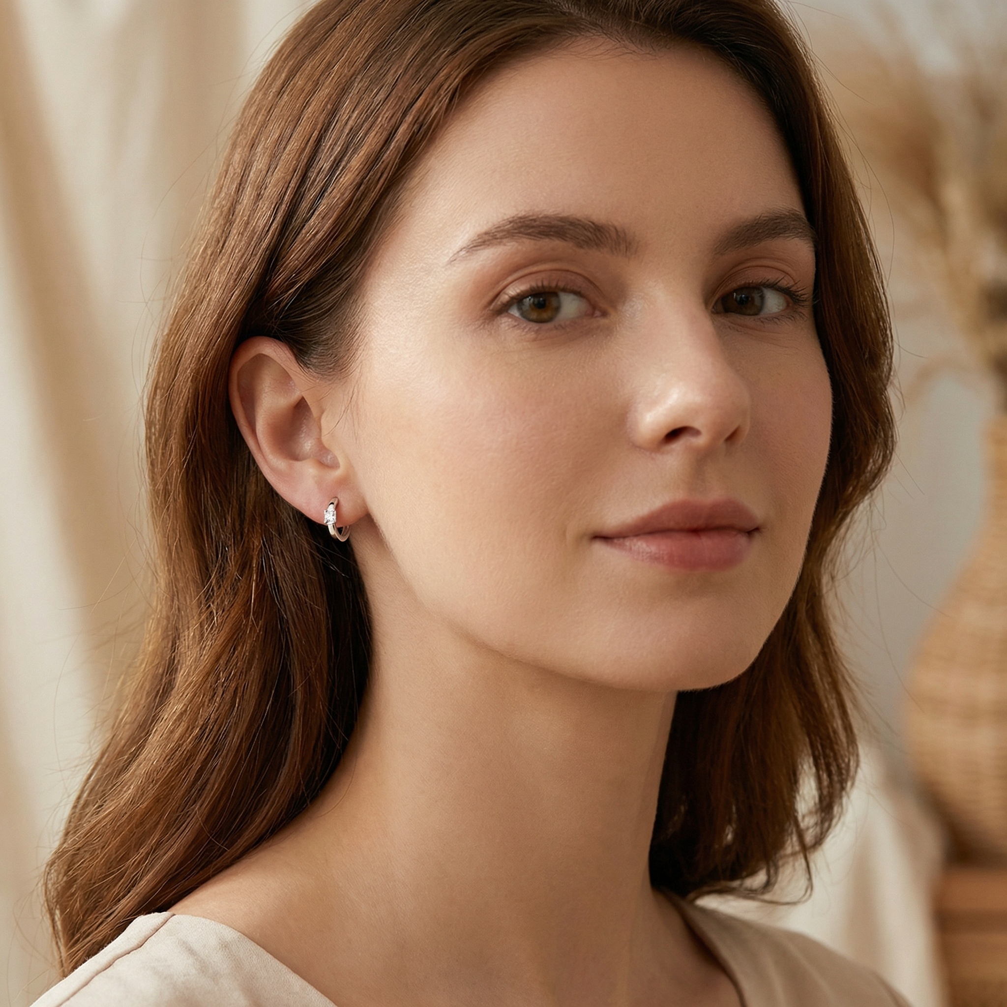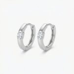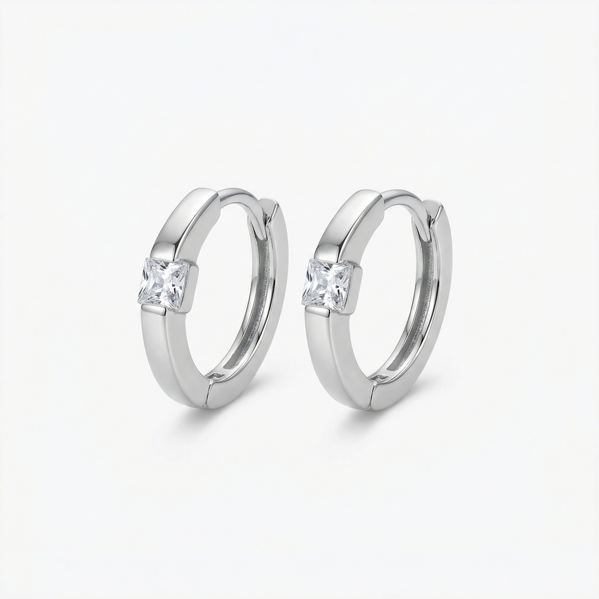 • These stunning huggie hoop earrings are crafted from high-quality sterling silver, offering a timeless and sophisticated aesthetic. Each hoop features a centrally placed, square-cut cubic zirconia that captures the light beautifully. The minimalist design ensures a sleek, flush finish, making them comfortable for everyday wear while still being elegant enough for formal occasions. The secure hinged clasp provides a seamless look and easy application. Perfect as a gift for a loved one or a classic addition to your own jewelry collection, these earrings blend modern simplicity with sparkling brilliance. Their versatile style pairs effortlessly with both casual outfits and evening wear, making them a must-have accessory for any jewelry enthusiast. | Brand: jewelryodm