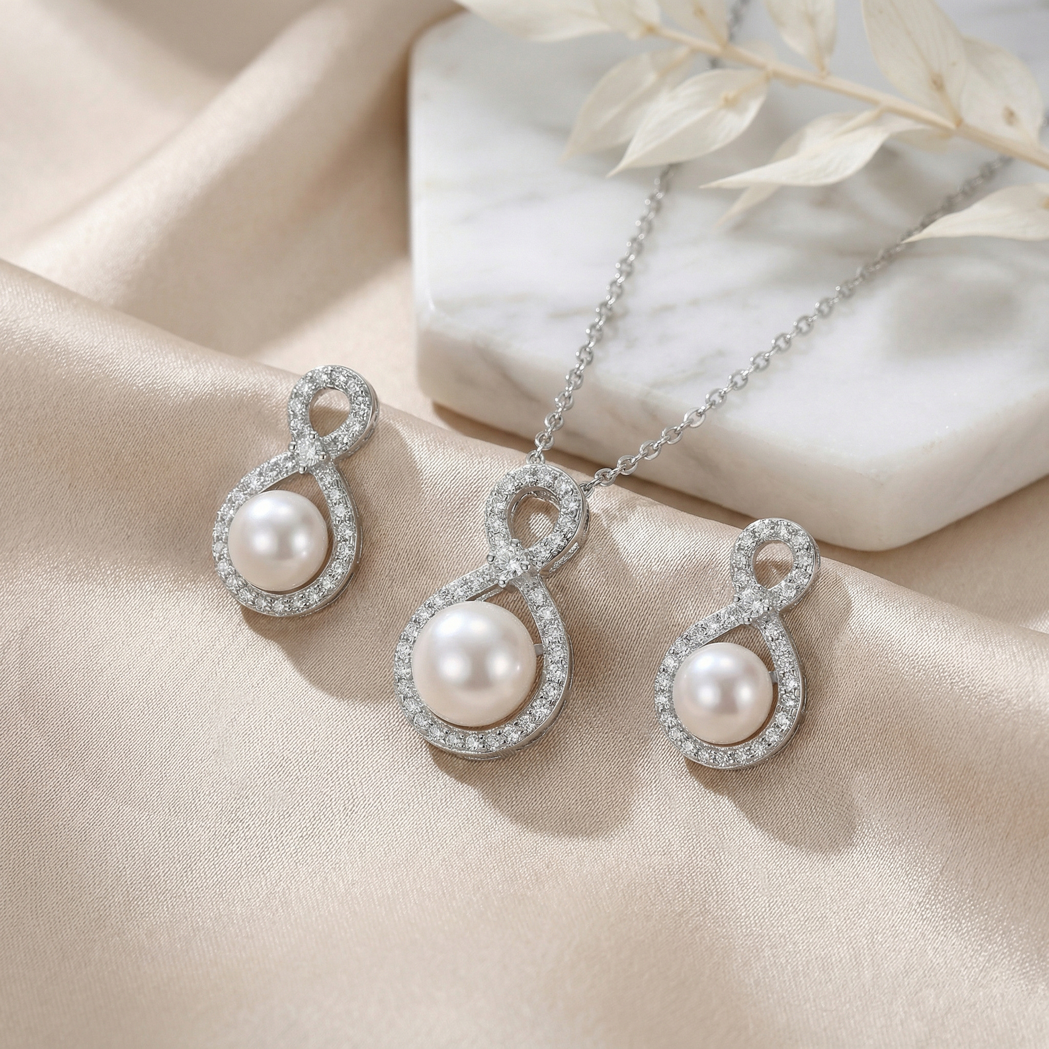Be the first to review “925 Sterling Silver Elegant Sterling Silver Infinity Pearl Necklace and Earrings Jewelry Set”