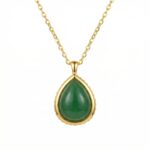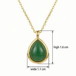 This exquisite necklace features a stunning teardrop-shaped green gemstone, reminiscent of fine jade, meticulously polished to a smooth cabochon finish. The deep, vibrant green hue of the stone is beautifully complemented by a lustrous metallic setting that adds a touch of sophistication to any outfit. Suspended from a delicate yet durable chain, this pendant is designed to rest gracefully against the skin. Whether worn for a formal occasion or as an everyday statement piece, its timeless silhouette and rich color make it a versatile addition to any jewelry collection. The meticulous craftsmanship ensures a high-shine finish that catches the light from every angle, making it an ideal gift for someone special or a luxurious treat for yourself. | Brand: jewelryodm