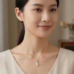 • This exquisite necklace features a beautifully carved pea pod pendant, crafted from a lustrous white gemstone that radiates a soft, milky glow. The organic shape is encased in a polished metallic frame, showcasing fine craftsmanship. At the top of the pendant, a delicate leaf motif is encrusted with shimmering pavé-set diamonds, complemented by a larger, brilliant-cut solitaire diamond that catches the light with every movement. Symbolizing prosperity and a harmonious family life, the pea pod design is both meaningful and stylish. Suspended from a refined link chain, this piece blends traditional symbolism with contemporary elegance. Whether worn for a special occasion or as an everyday statement, this timeless accessory adds a touch of sophisticated charm to any ensemble, making it a perfect gift for those who appreciate nature-inspired jewelry and delicate detailing. | Brand: jewelryodm