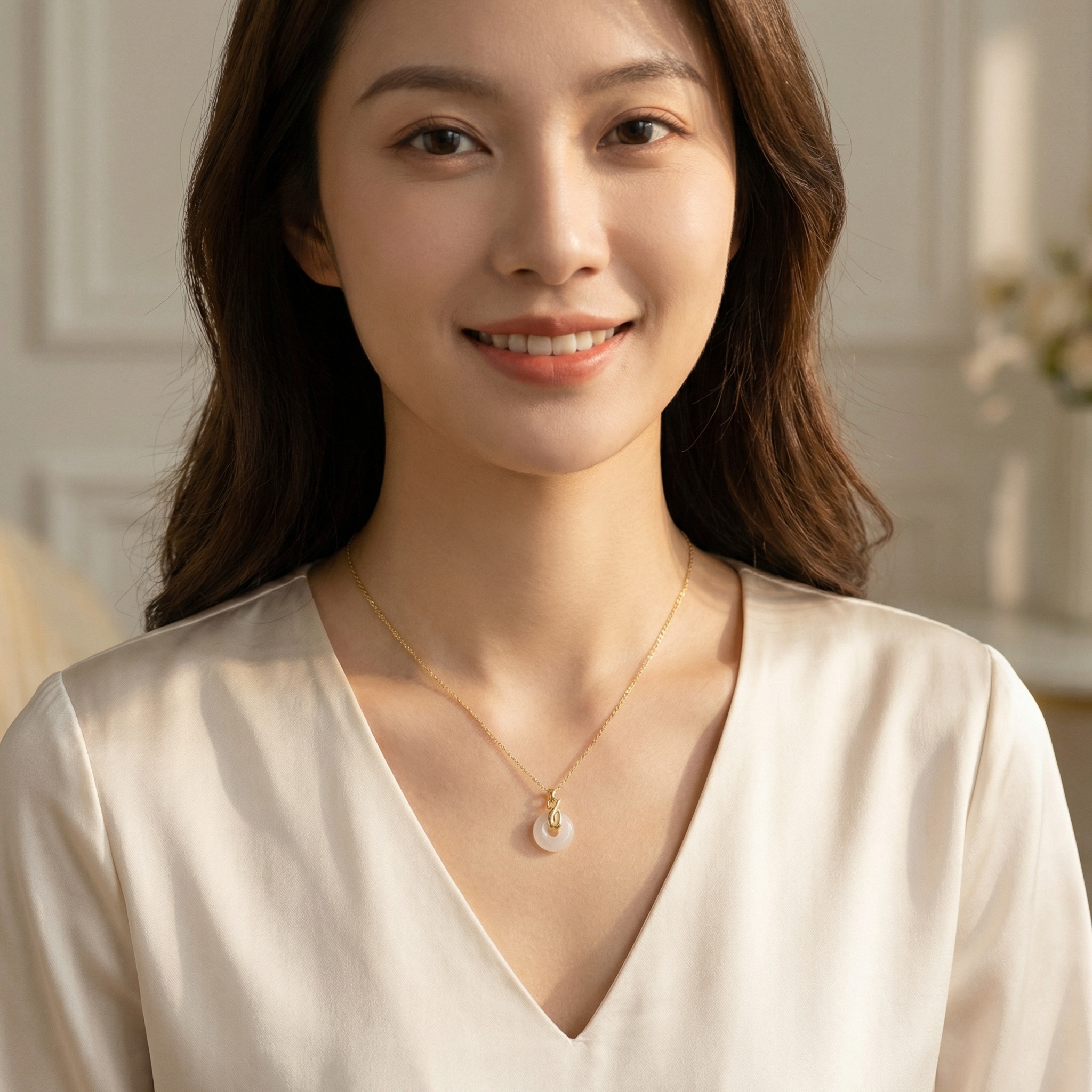 925 Sterling Silver Elegant White Jade Donut Pendant Necklace with Playful Dolphin Motif Bail is designed for style, comfort, and everyday use.