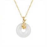 Be the first to review “925 Sterling Silver Elegant White Jade Donut Pendant Necklace with Playful Dolphin Motif Bail”