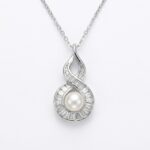Be the first to review “925 Sterling Silver Elegant White Pearl and Baguette Diamond Infinity Twist Pendant Necklace”
