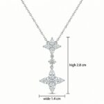 This stunning necklace features a sophisticated drop design crafted in high-quality silver-toned metal. The centerpiece showcases two intricate floral-inspired clusters, each meticulously set with four shimmering marquise-cut stones arranged in a delicate star pattern. A single brilliant round-cut stone connects the two motifs, adding fluid movement and an extra touch of radiance. The polished finish enhances the brilliant sparkle of the stones, creating a timeless and luxurious look. Perfect for formal occasions, weddings, or as a sophisticated gift, this piece dangles gracefully from a classic cable chain. Its refined craftsmanship and elegant floral motif embody grace and eternal beauty, making it a versatile addition to any fine jewelry collection. | Brand: jewelryodm