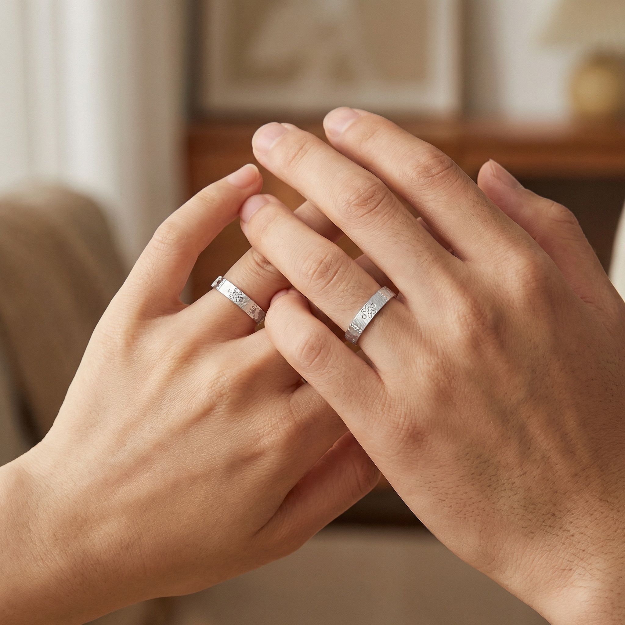 925 Sterling Silver S925 Sterling Silver Adjustable Couple Rings with Endless Knot Design