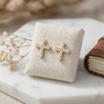 • These stunning cross-shaped stud earrings offer a blend of timeless symbolism and contemporary elegance. Each piece is meticulously crafted with a series of round, brilliant-cut diamonds that follow the graceful lines of the cross. The stones are securely held in individual settings, creating a unique “bubble” texture that enhances their brilliance and fire. The warm tone of the polished precious metal provides a luxurious backdrop for the shimmering gems. Perfect for daily wear or special religious milestones, these earrings represent devotion and modern style. They feature a secure post-back closure for comfortable and reliable wear. Whether gifted to a loved one or worn as a personal statement of faith, these radiant studs are designed to capture light and attention from every angle with their exquisite, high-shine finish. | Brand: jewelryodm