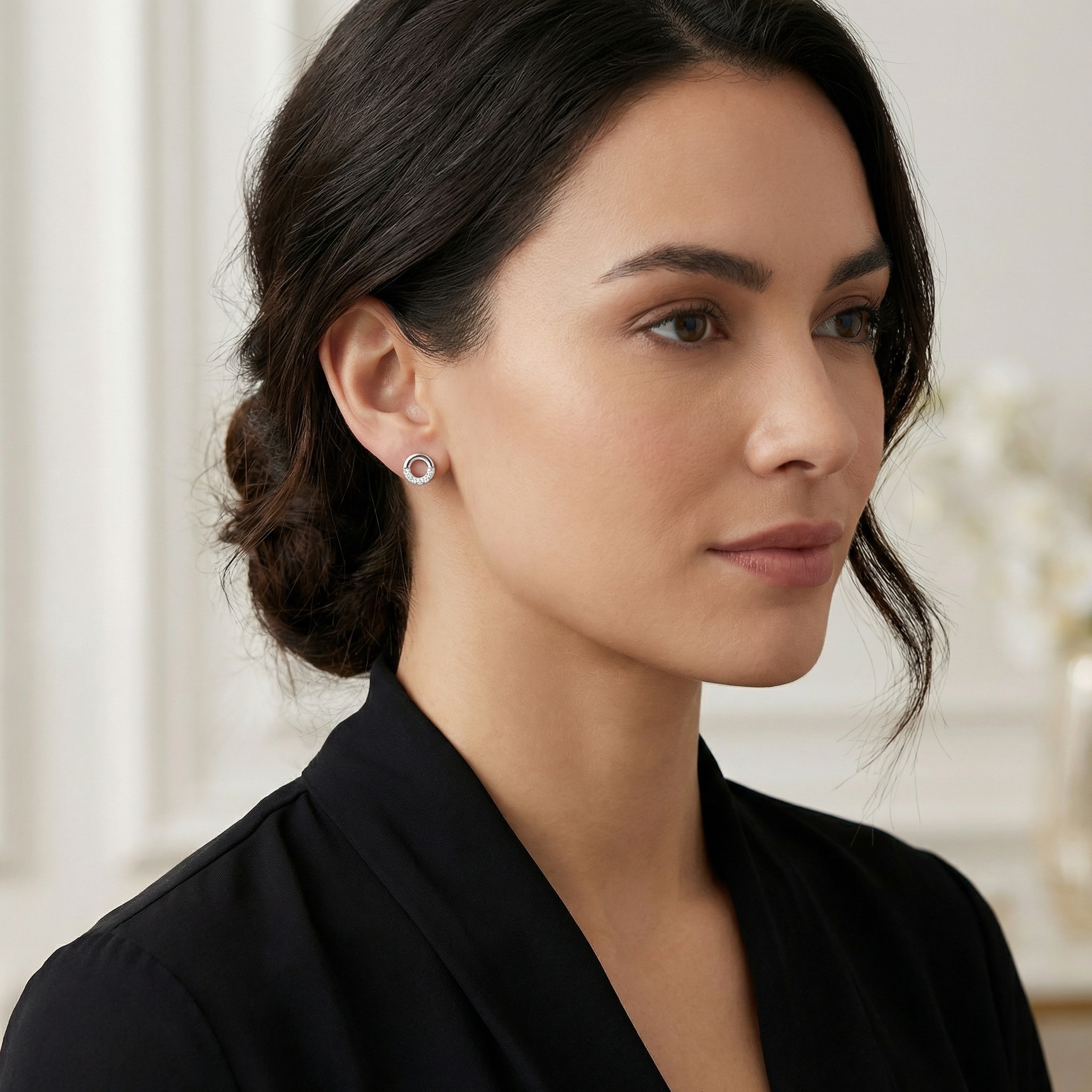 Be the first to review “925 Sterling Silver Sterling Silver Round Open Circle Stud Earrings with Shimmering Pavé Set Accents”