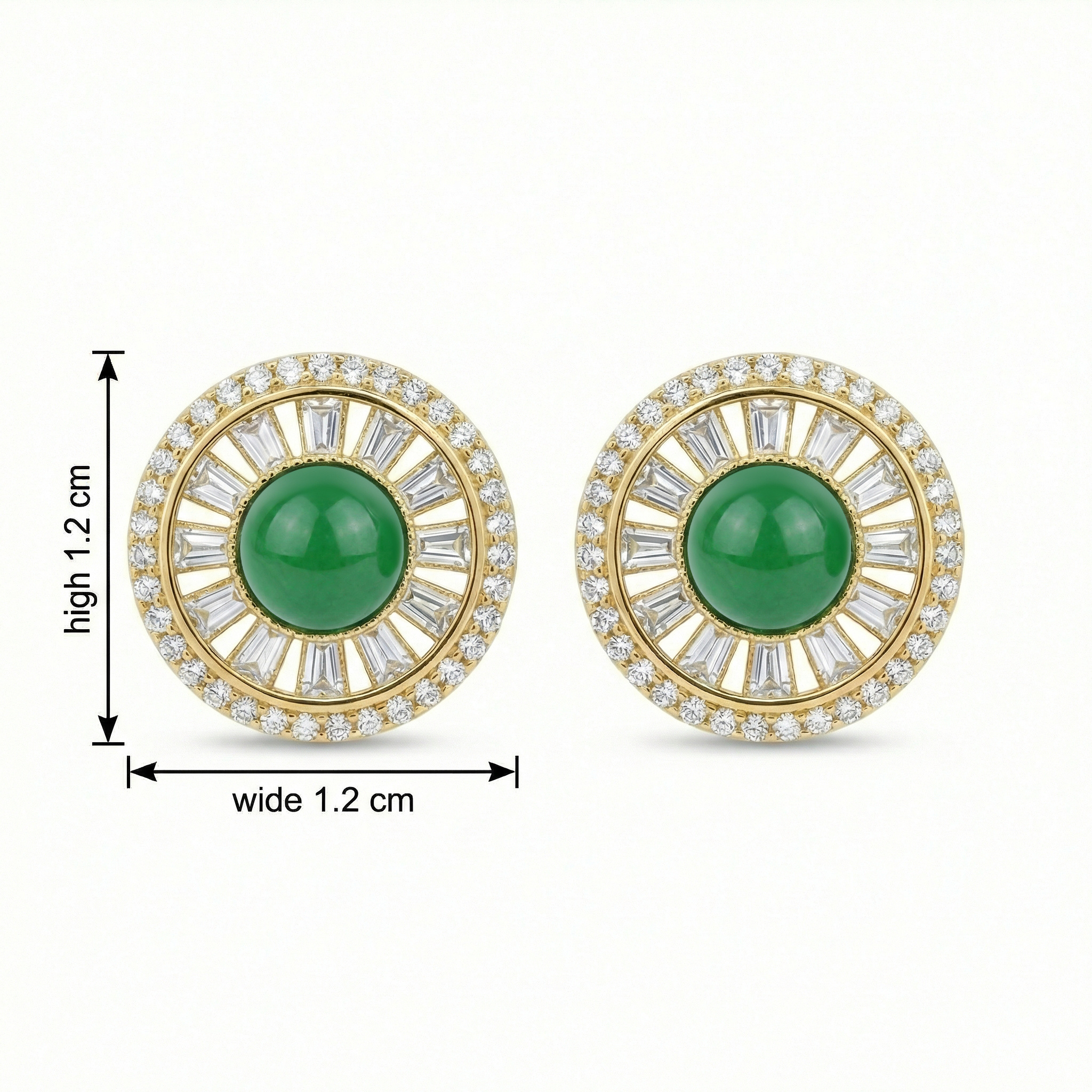 925 Sterling Silver Stunning Round Emerald Center Earrings with Baguette and Round CZ Halo Design