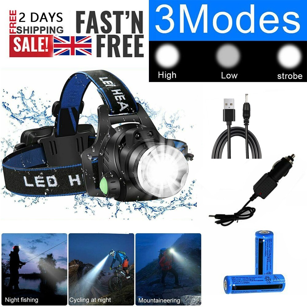 99000000LM Powerful Headlamp LED Head Torch USB Rechargeable Headlight Head Lamp
