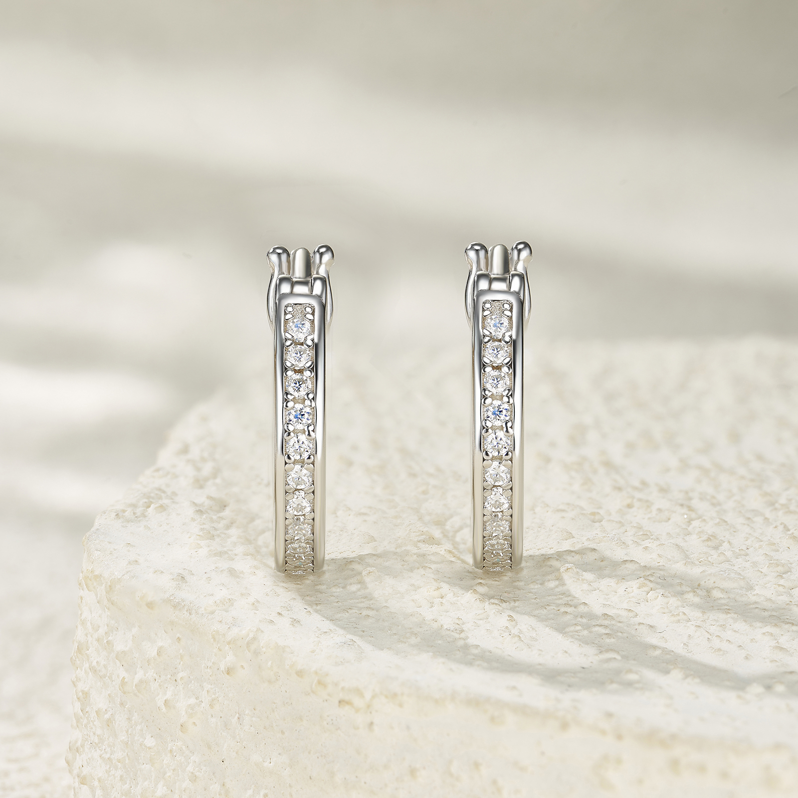 A Luxurious And Fashionable Minimalist Jewelry Earring Set Featuring Top-quality Moissanite Stones, Made Of S925 Silver Electroplated With Platinum.