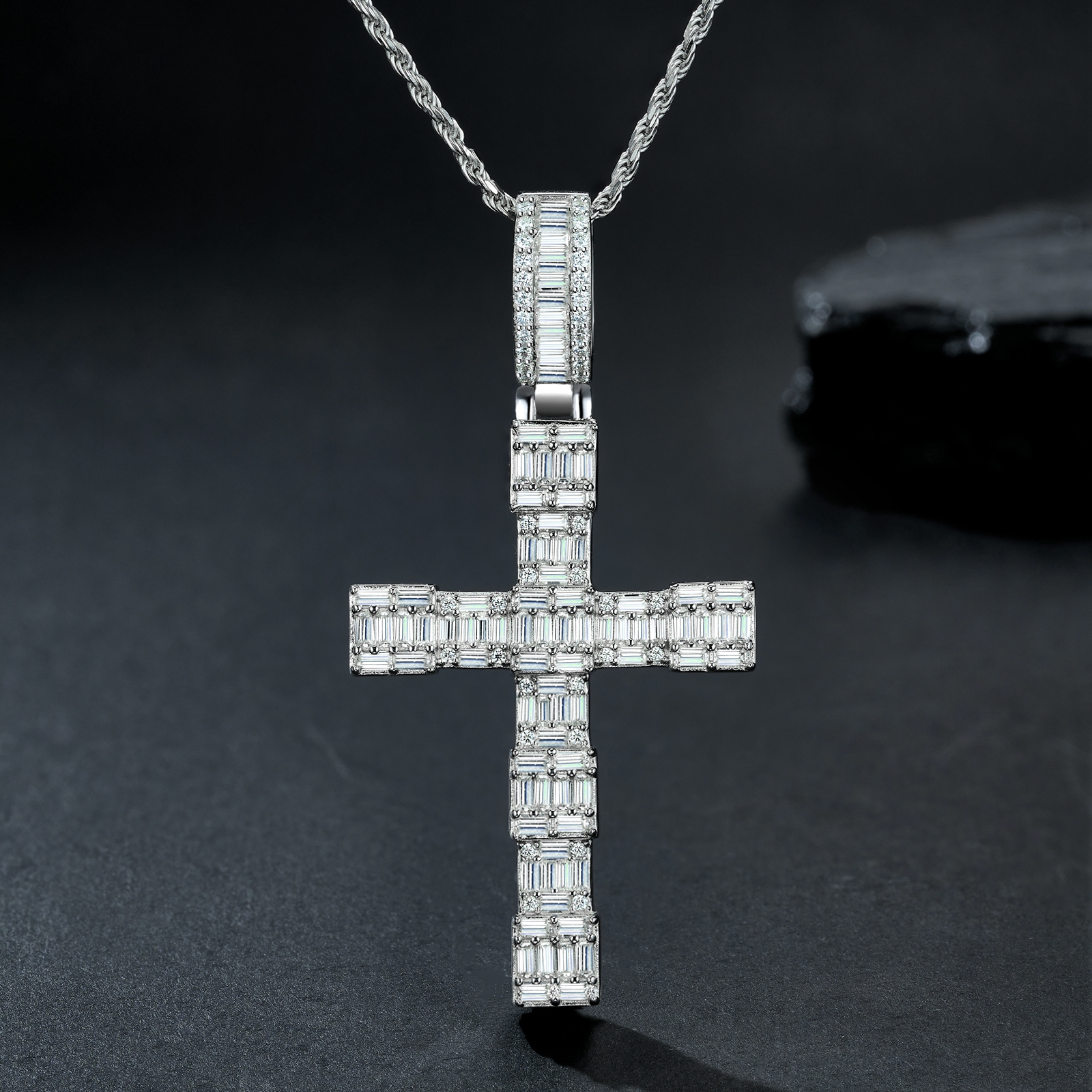 A Luxurious And Fashionable Minimalist Jewelry Pendant Necklace Featuring Top-quality Moissanite, Made Of S925 Silver Electroplated With Platinum.