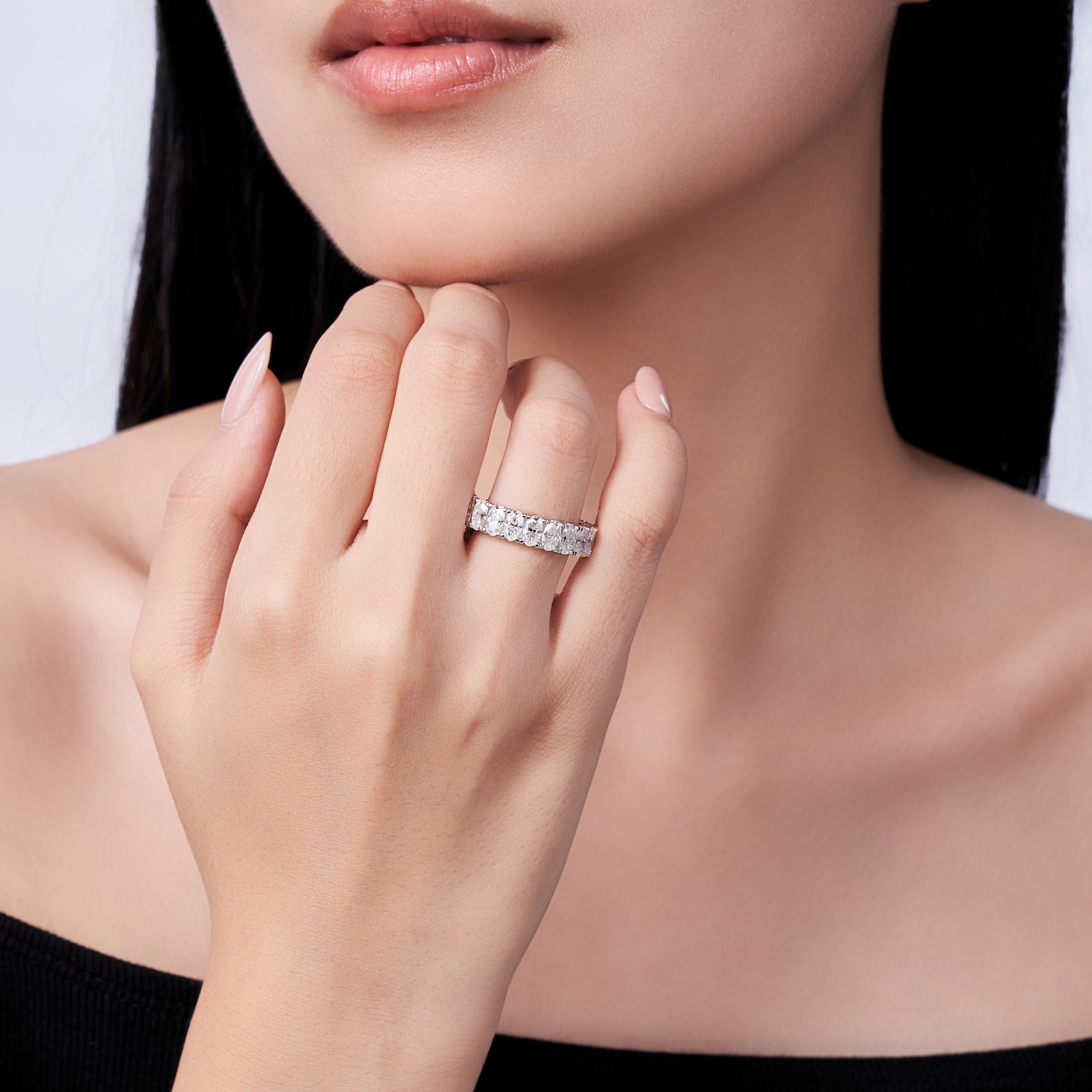 A Luxurious And Fashionable Minimalist Jewelry Ring Featuring Top-quality Moissanite, Made Of S925 Silver Electroplated With Platinum.