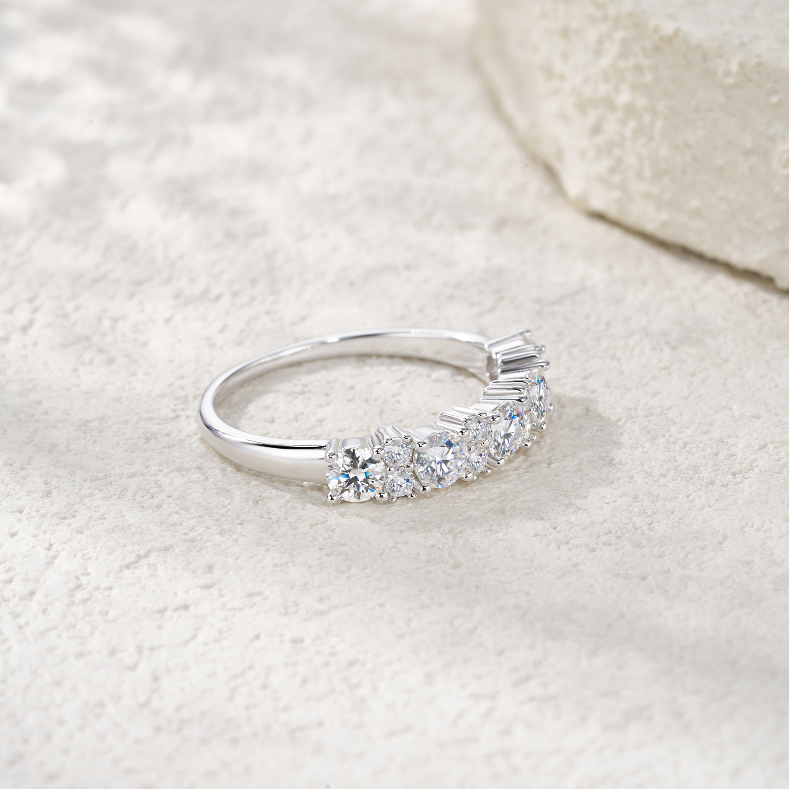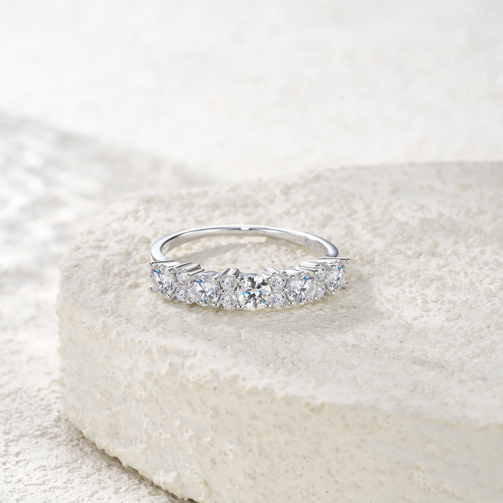 A Luxurious And Fashionable Minimalist Jewelry Ring Featuring Top-quality Moissanite, Made Of S925 Silver Electroplated With Platinum.