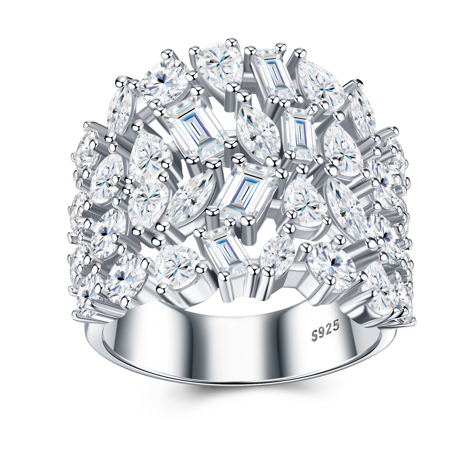 A Luxurious And Fashionable Minimalist Jewelry Ring Featuring Top-quality Moissanite, Made Of S925 Silver Electroplated With Platinum.