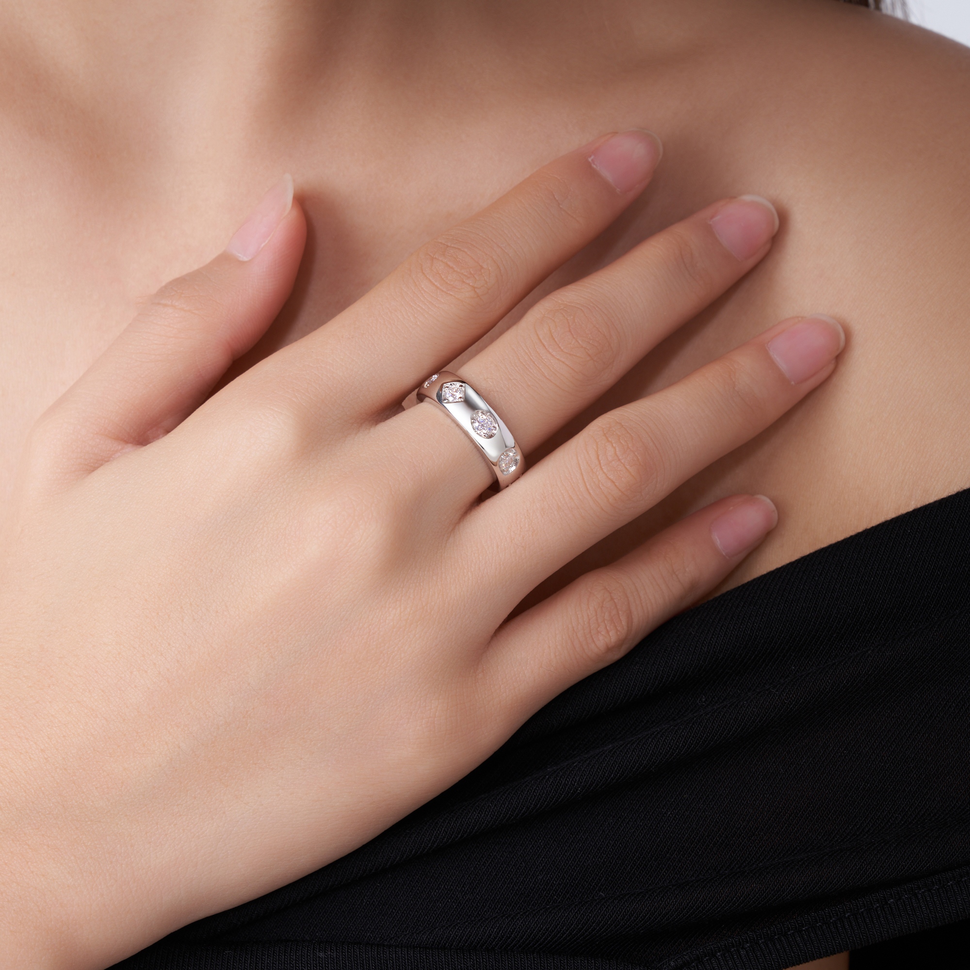 A Luxurious And Fashionable Minimalist Jewelry Ring For Women Featuring A 0.1-carat Top-quality Morganite, Made Of S925 Silver Electroplated With Platinum.