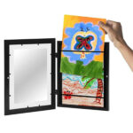 Unique design – double fixed picture and black elastic band with metal pins, can display and change the artwork. You can open and close like a book, and it features a double secure drawing and black elastic strap with metal pin to stabilize the artwork on display. • Two back hanging methods, support horizontal or vertical wall hanging. With an elastic strap inside, you can display art without it or use it to store old art. Your little Picasso deserves a frame to display their creations like a pro. • Picture frames are ideal as memory boxes for displaying and storing children’s photos, baby photos, postcards, scrapbooks, concert cards, collectibles, or other keepsakes. Make your own unique artwork to enhance your life and surprise your kids, family or friends.
