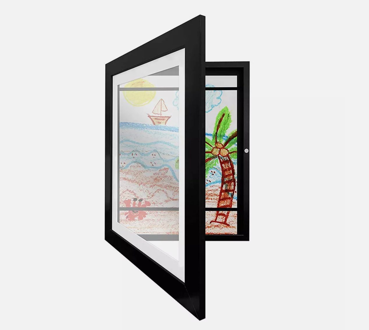 • The deep detachable photo frame is made of high-quality glossy acrylic glass and wood-based panel frame, making your artwork clearly visible. Simply slide your favorite artwork under the provided elastic band to secure and their artwork is ready to display.