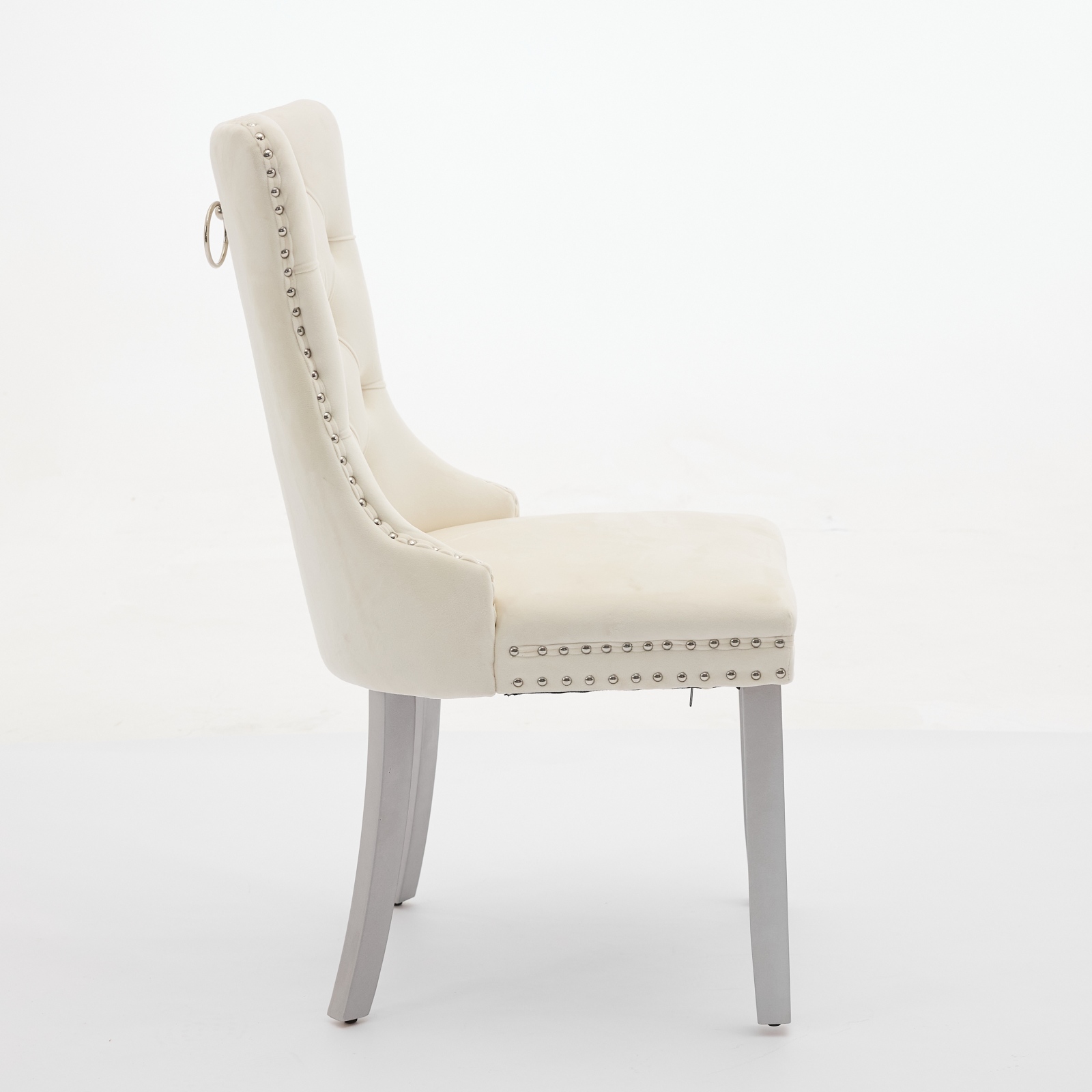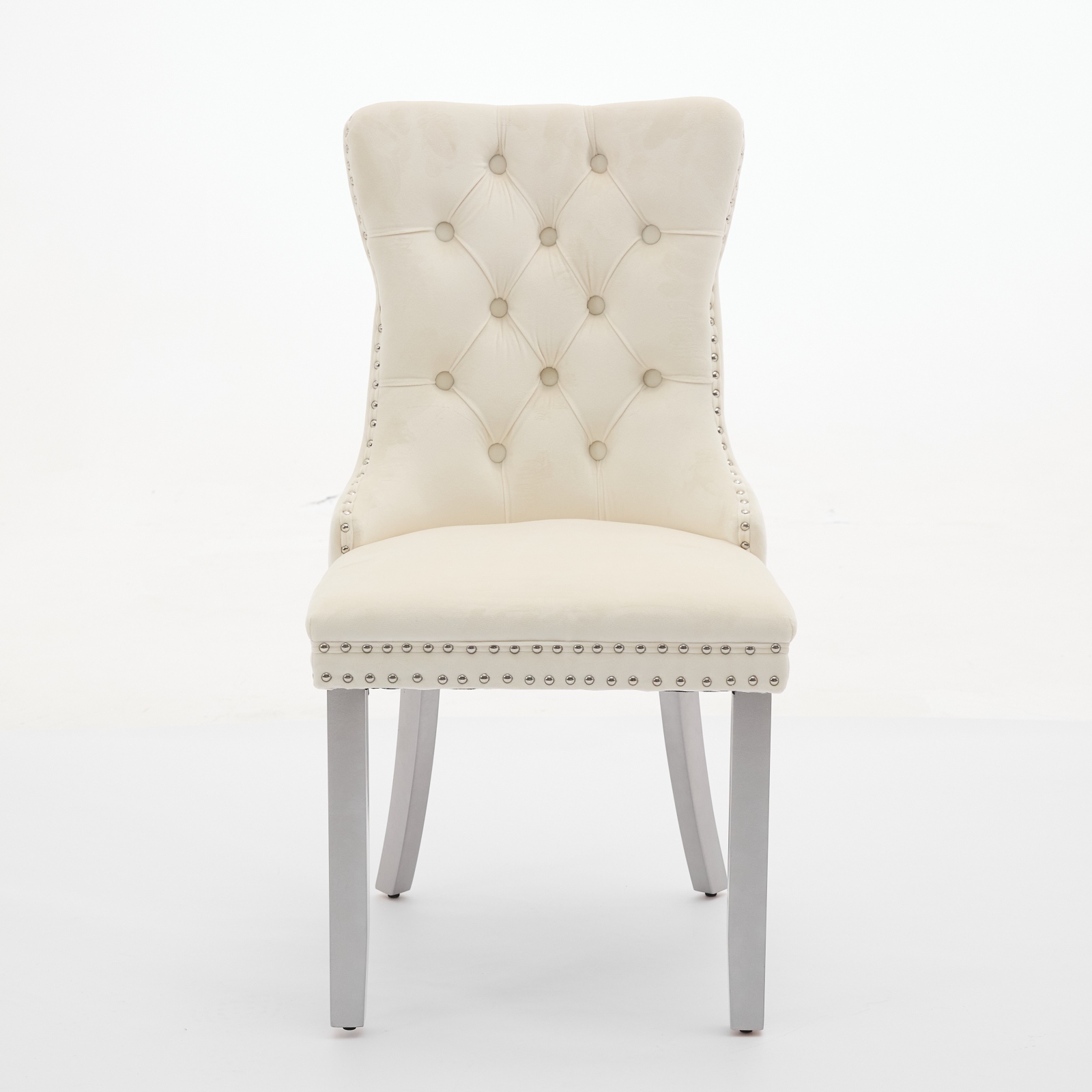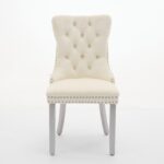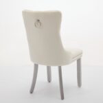 A&A Furniture, Nikki Modern, High-end Tufted Solid Wood Contemporary Velvet Upholstered Dining Chair With Wood Legs Nailhead Trim 2-Pcs Set, Milky White
