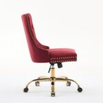 A&A Furniture Office Chair,Modern Velvet Upholstered Tufted Button Home Office Chair With Golden Metal Base,Adjustable Desk Chair Swivel Office Chair Wine Red