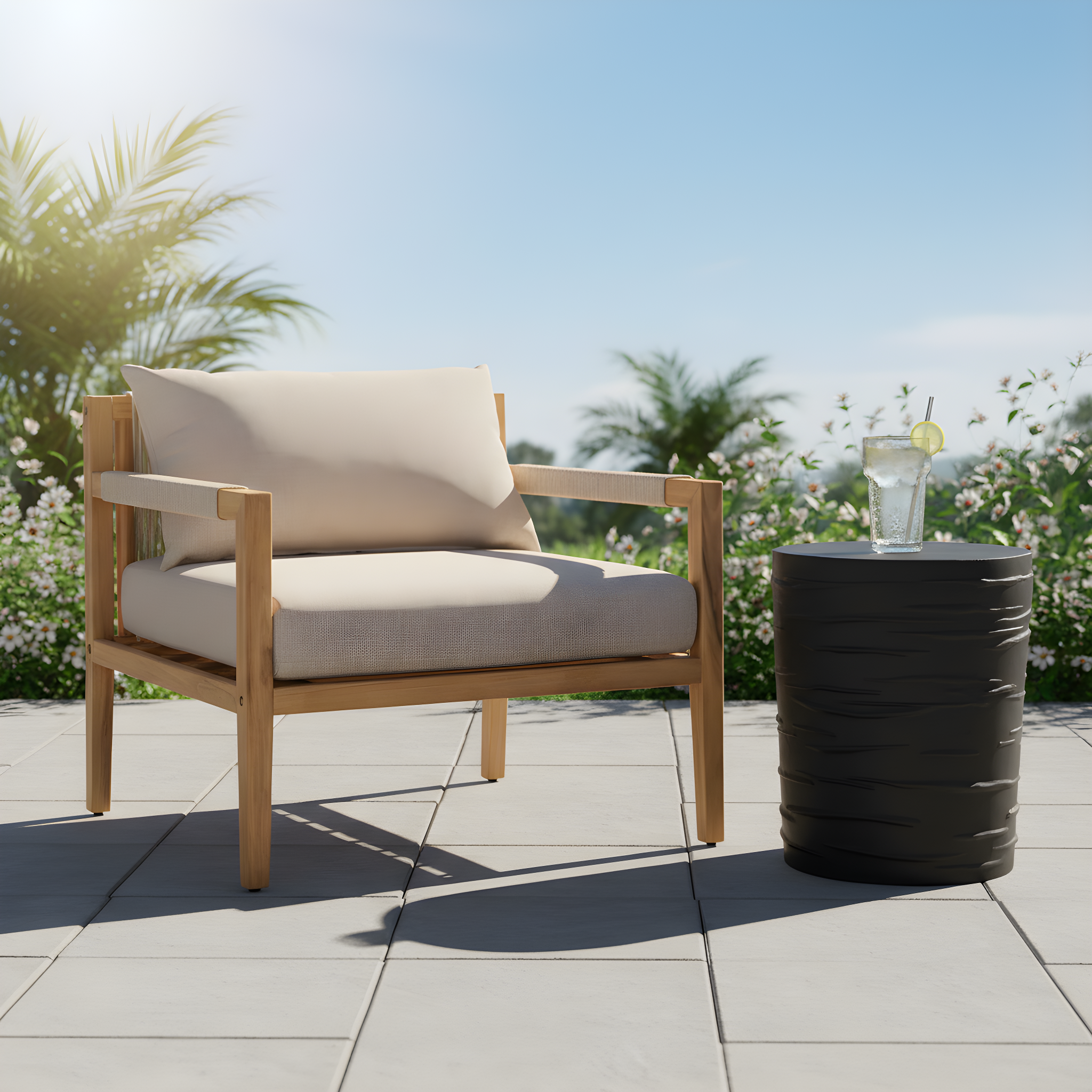 Acacia Wood & Beige Rope Chair With Lightweight Concrete Side Table Set is designed for style, comfort, and everyday use.