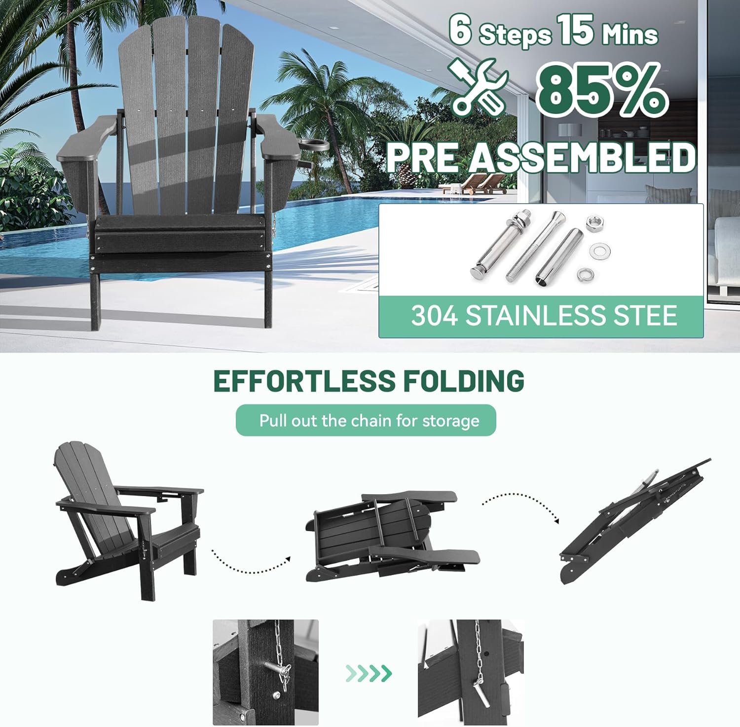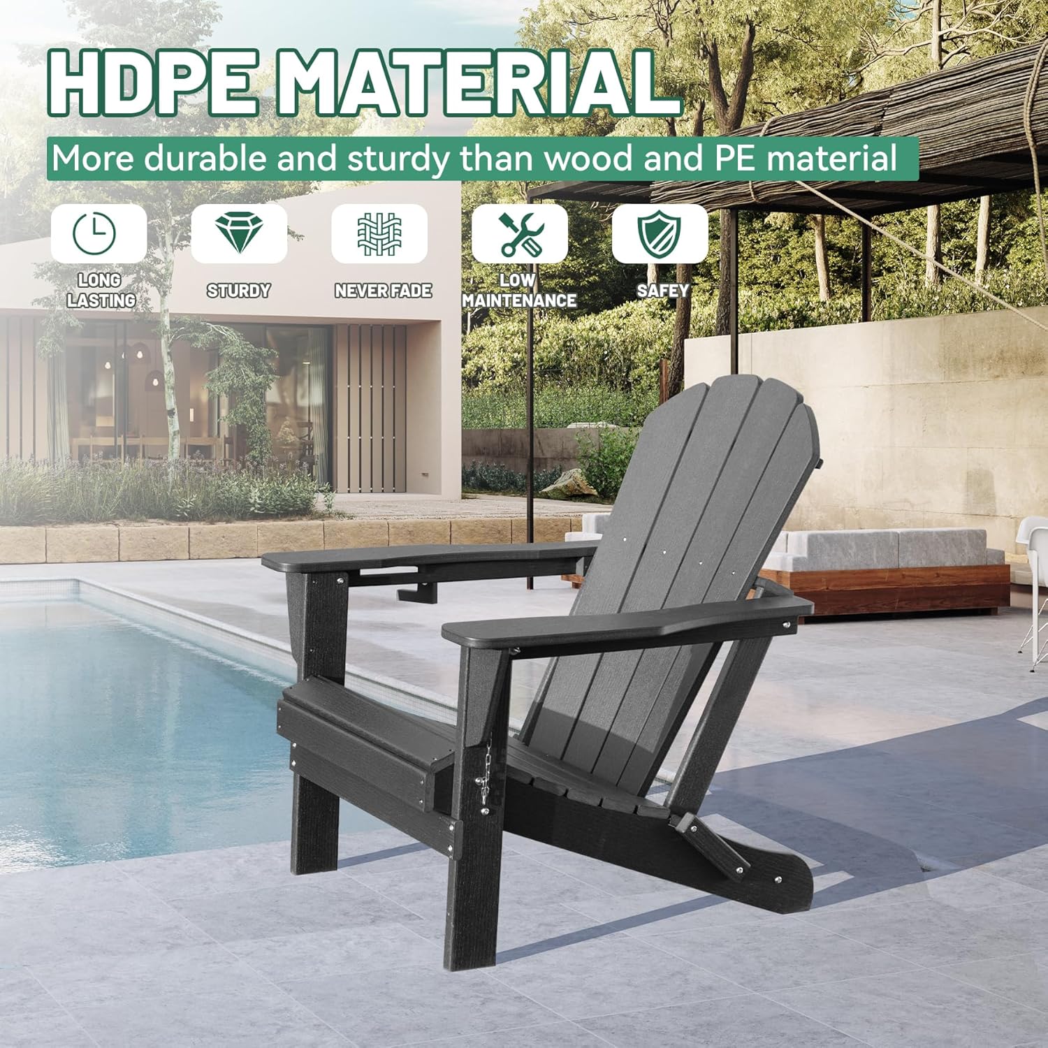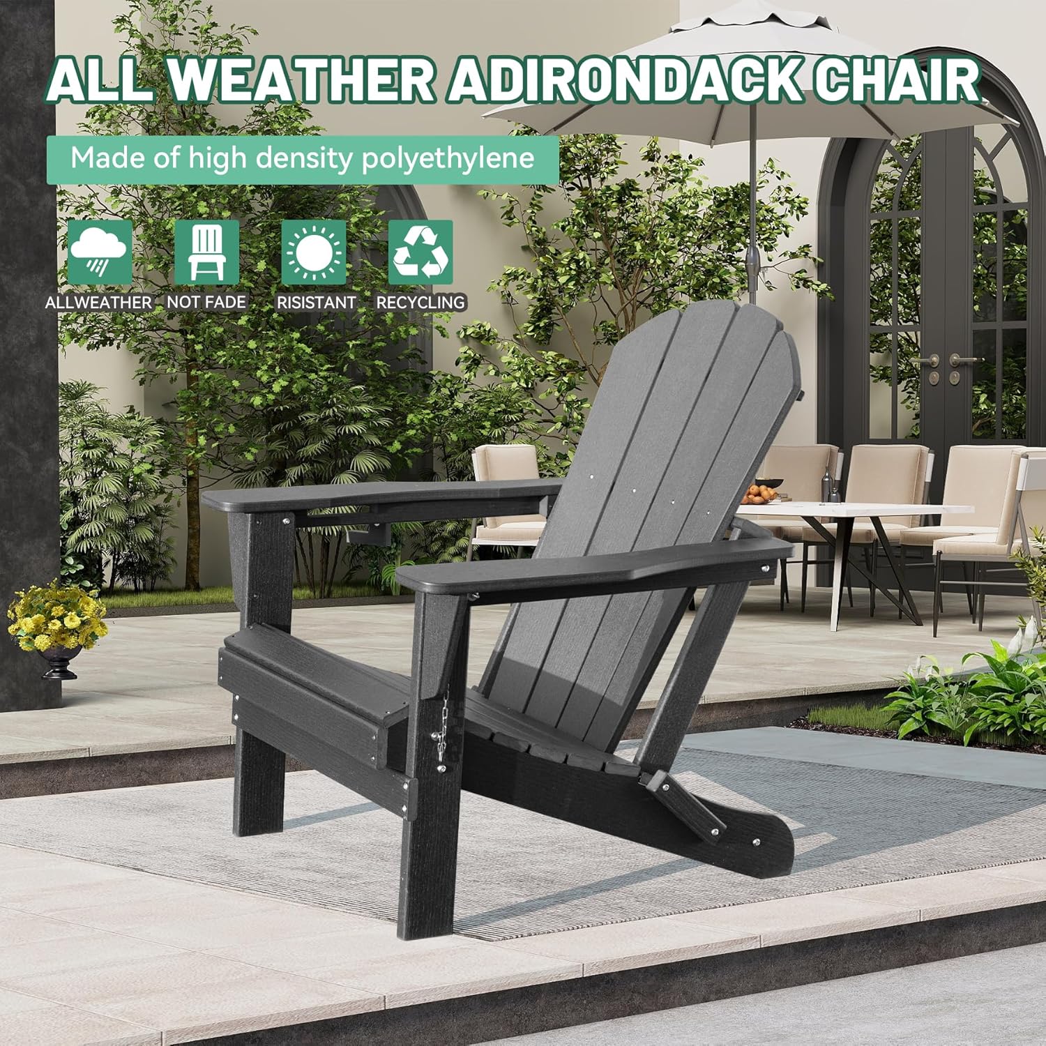 Adirondack Chair, Plastic Adirondack Chairs, HDPE Adirondack Chair, Folding Adirondack Chairs,Outdoor Chairs With Cup Holder For Lawn Patio Deck Fire Pit -Gray is designed for style, comfort, and everyday use.
