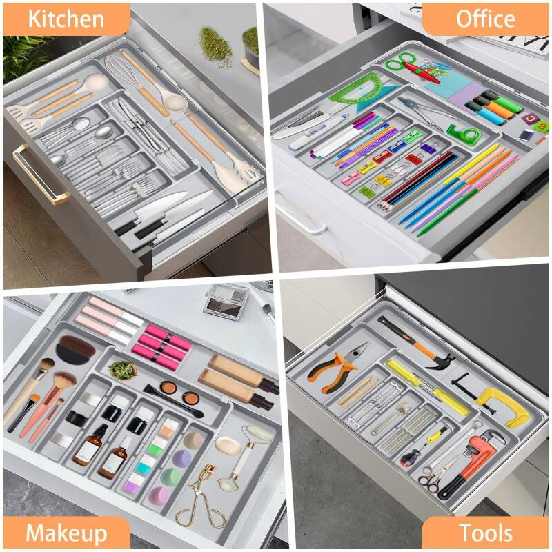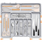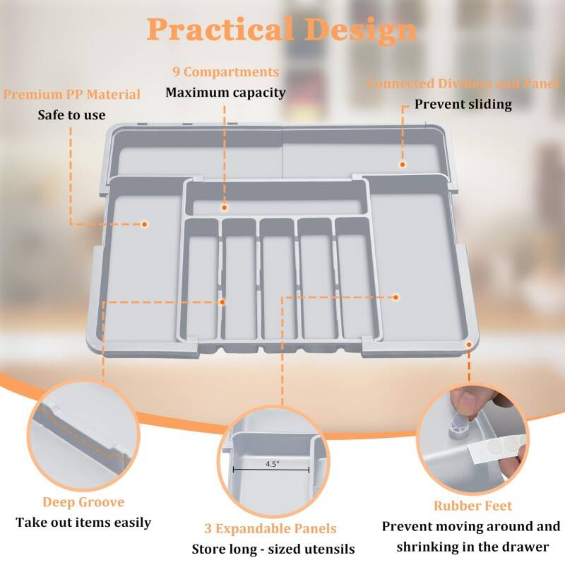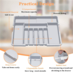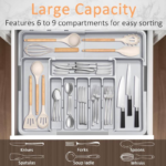 Adjustable 6-9 Compartment Kitchen Drawer Organiser For Large Capacity, Perfect Utensil Drawer Organiser, Cutlery Drawer Organiser, Cutlery Tray