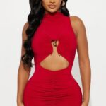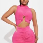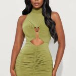 Affectionate Metal Decorated Solid Color Turtleneck Pleated Sheath Mini Dress