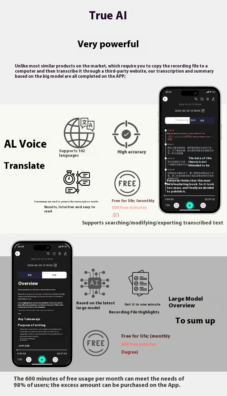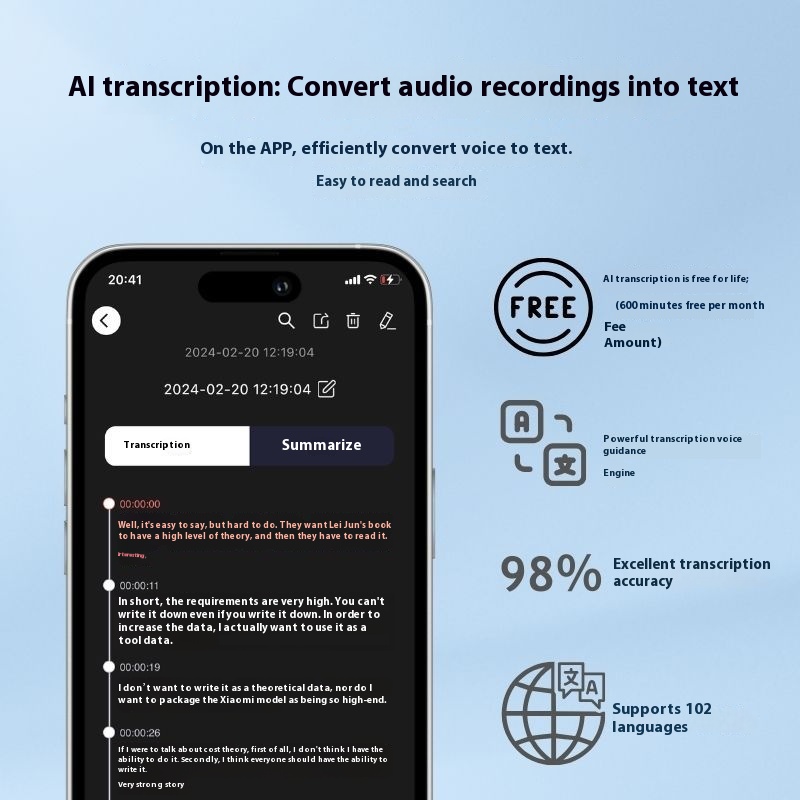 AI Smart Voice Recorder With AI Conversion And Big Model Summary is designed for style, comfort, and everyday use.
