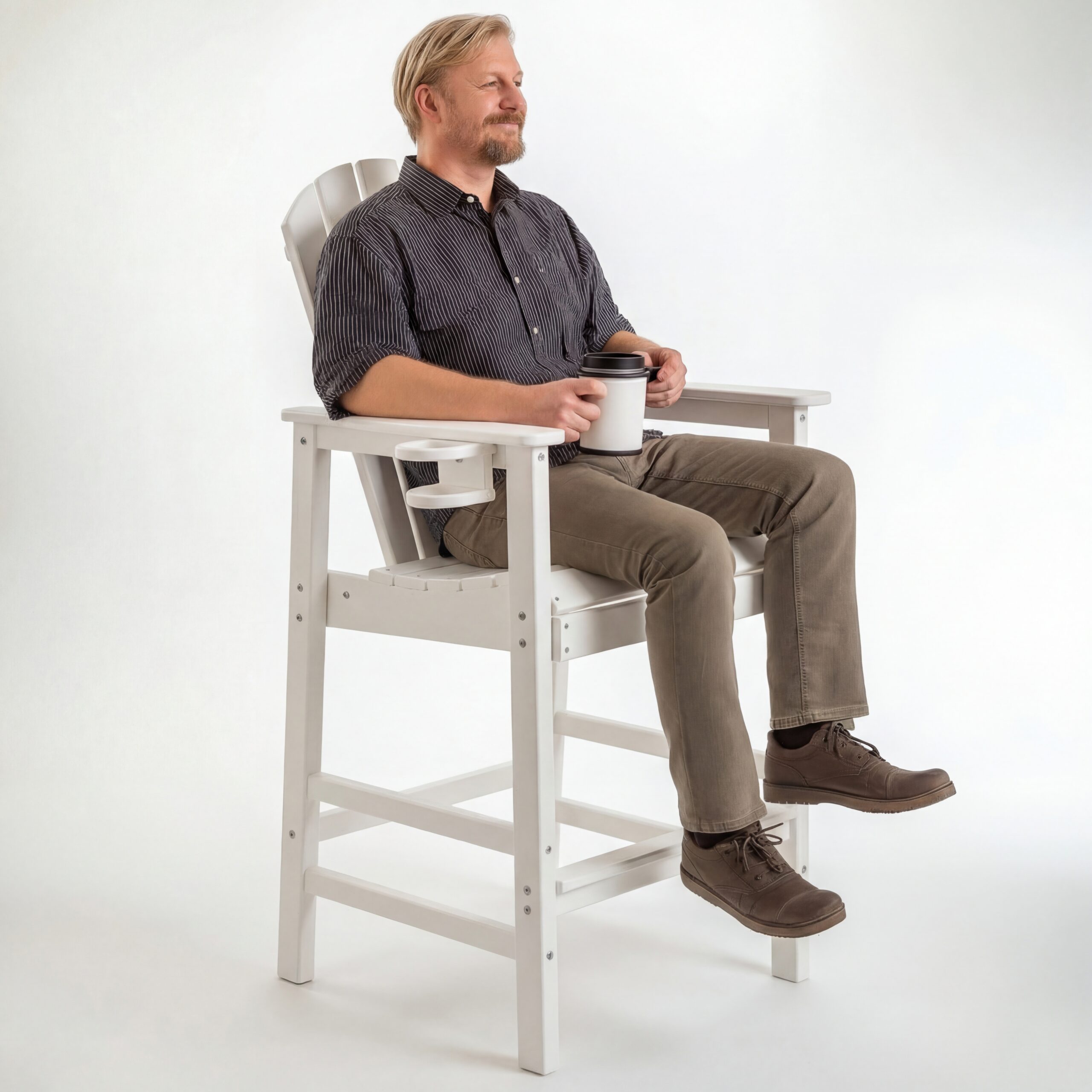 All-Weather HDPE Bar Height Adirondack Chair, Outdoor Patio Bar Chair With Armrests & Cup Holder, UV Weather Resistant, White 1 Piece WH is designed for style, comfort, and everyday use.