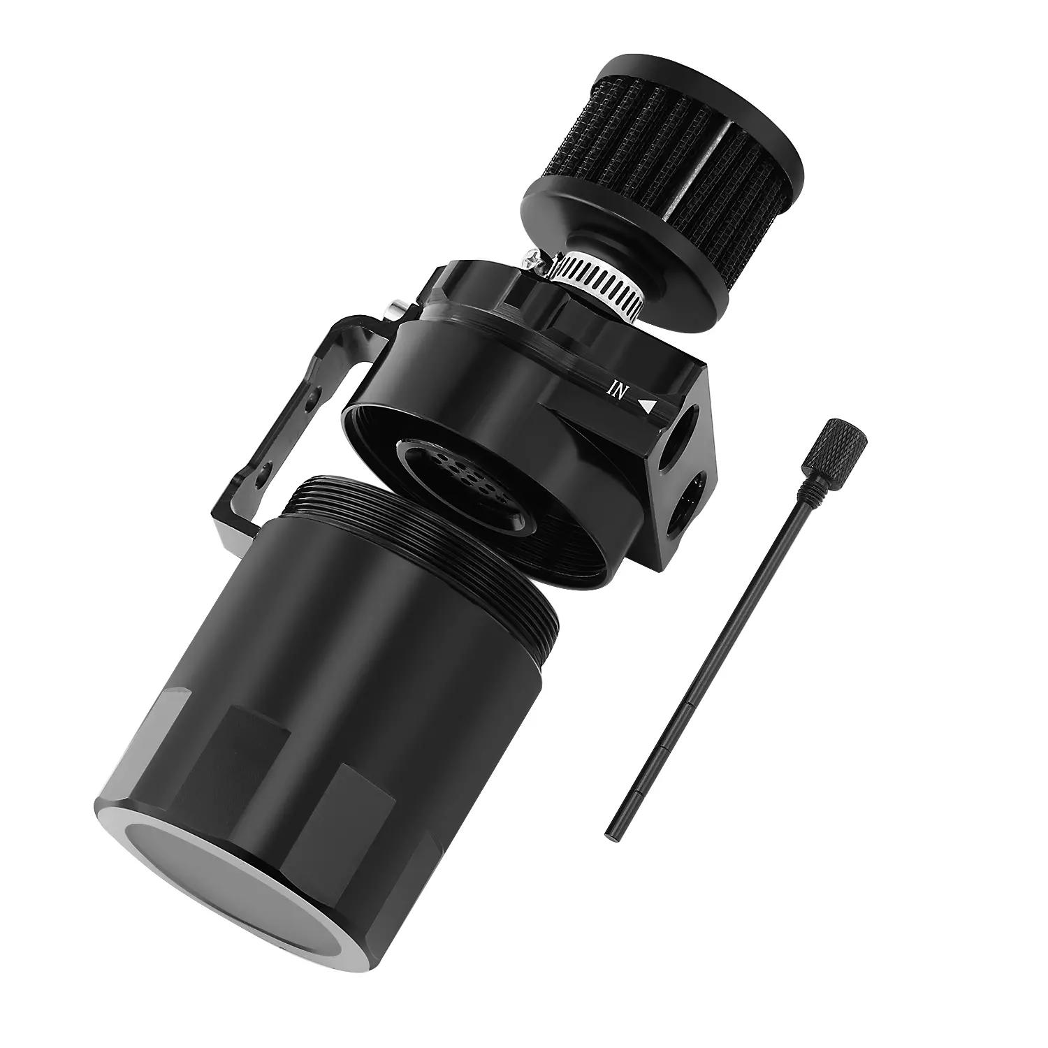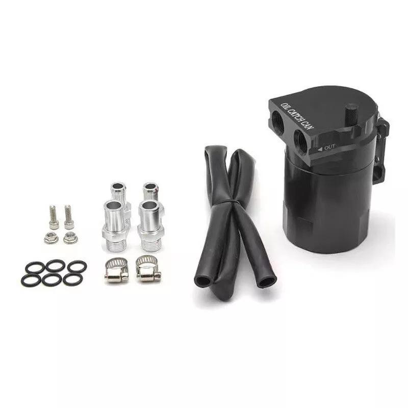 • General oil tank filter, oil tank collector, oil tank collector Features: ※ Engine Protection The oil permeability stop pot installed on the original exhaust pipe of the car engine collects waste oil to protect the engine, reduces carbon deposits in the engine compartment, extends engine life, and improves engine efficiency.※ Rust-Free and Durable The aluminum alloy oil collection can is lightweight and rust-free. Its surface is not only beautiful but also more durable after anodic oxidation treatment.※ IN and OUT Instructions The IN and OUT instructions next to the two filters are easy to distinguish during use.※ Environmental Protection After installing the oil collection can, most oil contaminants are filtered out of cylinder combustion, correspondingly reducing natural gas emissions. The cleaning process reduces exhaust emissions.※ Universal and Easy Installation It is suitable for most cars with general modifications, equipped with 3 sets of interfaces: 11mm, 13mm, 15mm, suitable for most cars on the market. Installation is extremely simple – just connect the filters to the two interfaces and then connect the hoses! Specifications: Type: Oil Catch Can Material: Aluminum Alloy Color: Black Capacity: 0.3 Liter / 300 ml Breather Filter: Approx. 5750mm / 2.21.96in Hose Length: Approx. 770 mm / 2.5 ft Hose Inner Diameter: 10mm / 0.39in Size: Approx. 68.5 * 113 mm / 2.7 * 4.4 inches Net Weight: 637gPackage Contents: 1 Oil Can 1 Air Filter 1 10mm Hose 2 15mm Fittings (Inner Diameter 10mm) 2 13mm Fittings (Inner Diameter 8mm) 2 11mm Fittings (Inner Diameter 6mm) 3 Clamps 2 Screws 2 Nuts