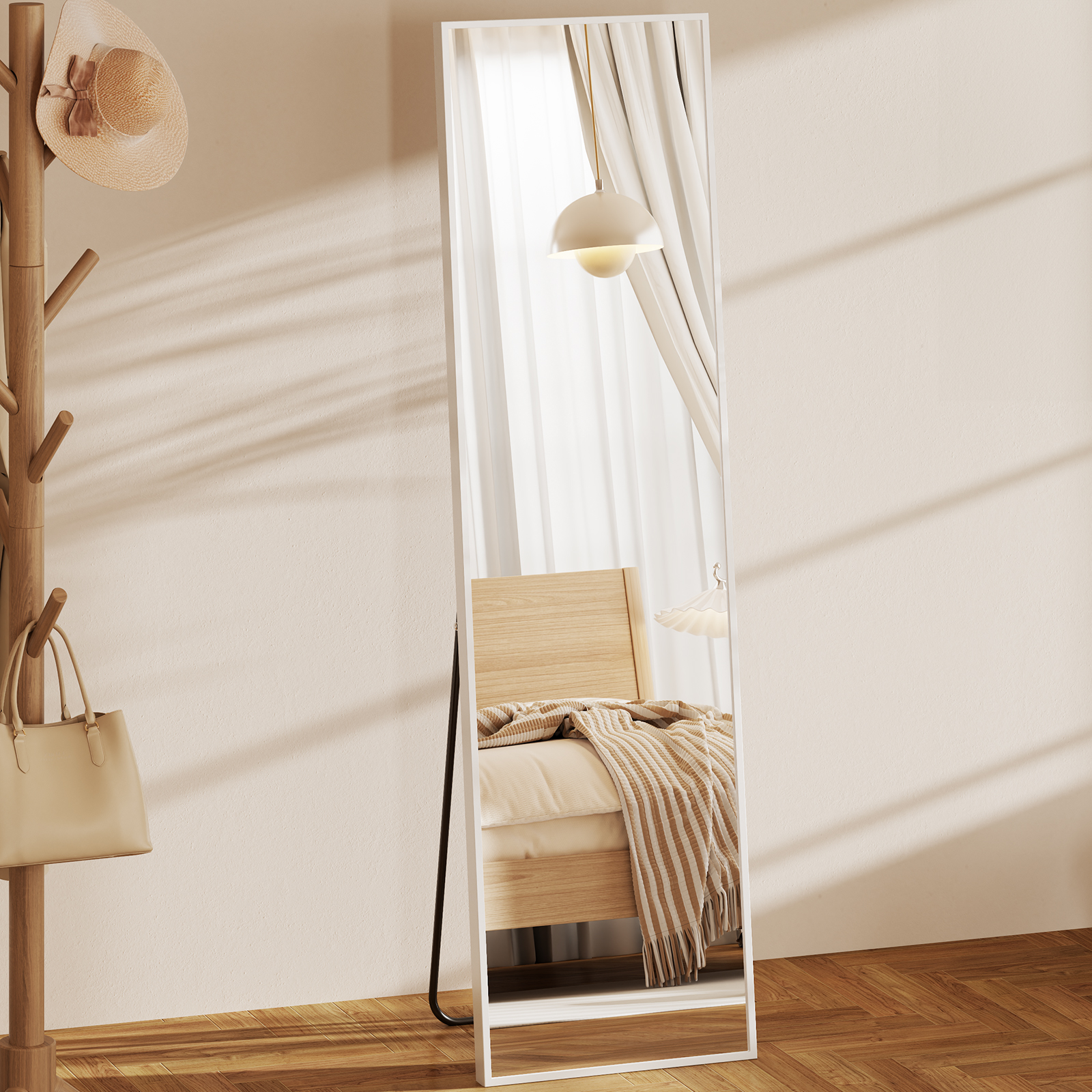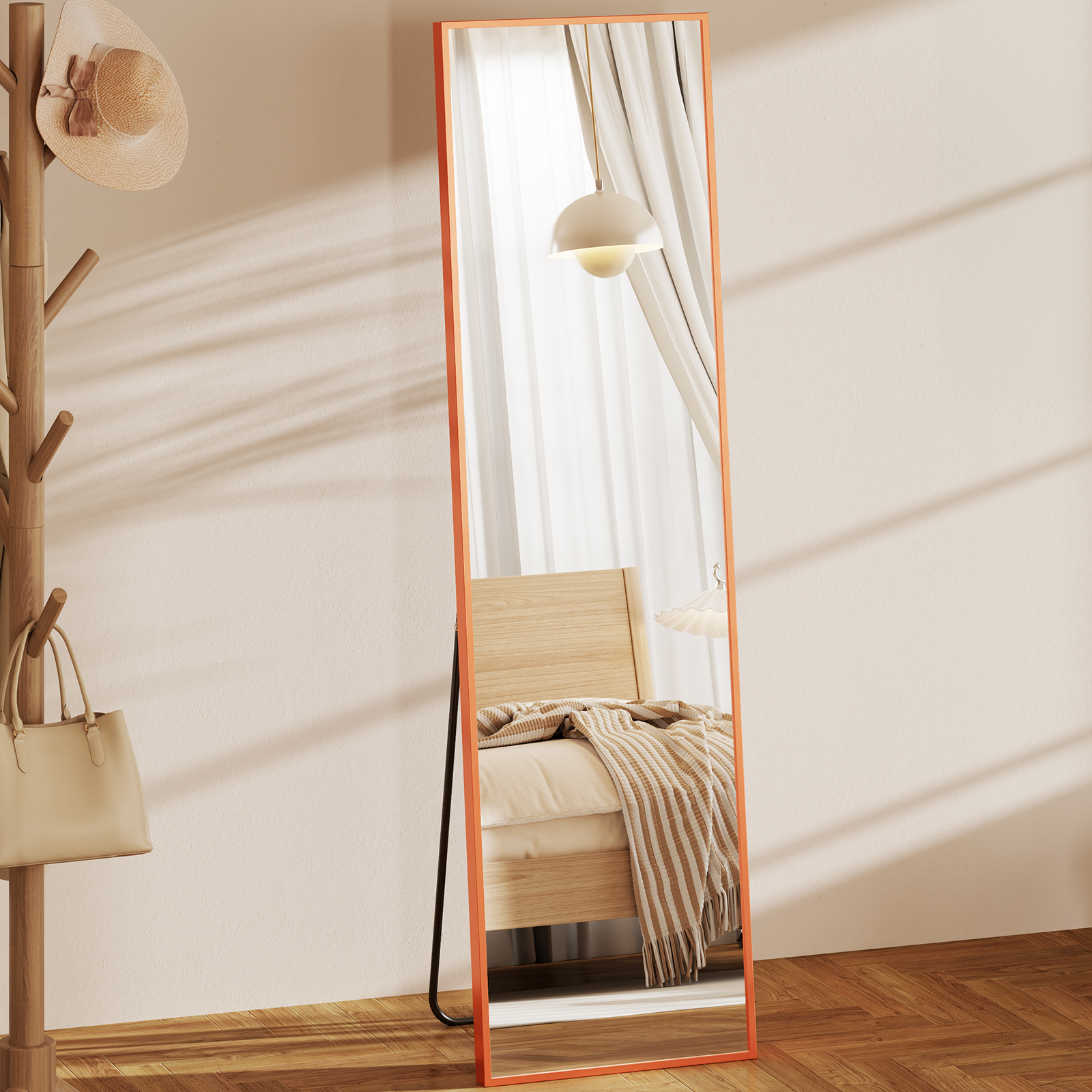 • This full-length wall mirror is made of anti-rust and colorfast aluminum alloy with a thin frame featuring intricate wire-drawn treatments for a sophisticated texture. The mirror is made with upgraded explosion-proof nano glass with a sterling silver layer for enhanced clarity, making it resistant to breakage. The back of the mirror has an explosion-proof design for added safety.