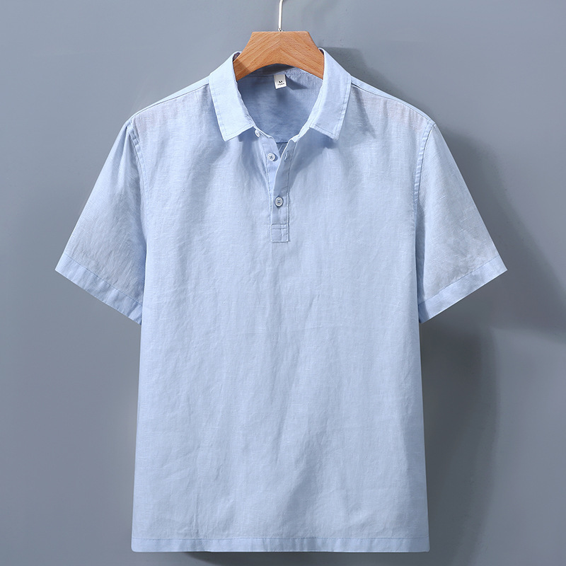 Arrival Mens Short-Sleeve Shirt In Pure Linen With A Turn-Down Collar