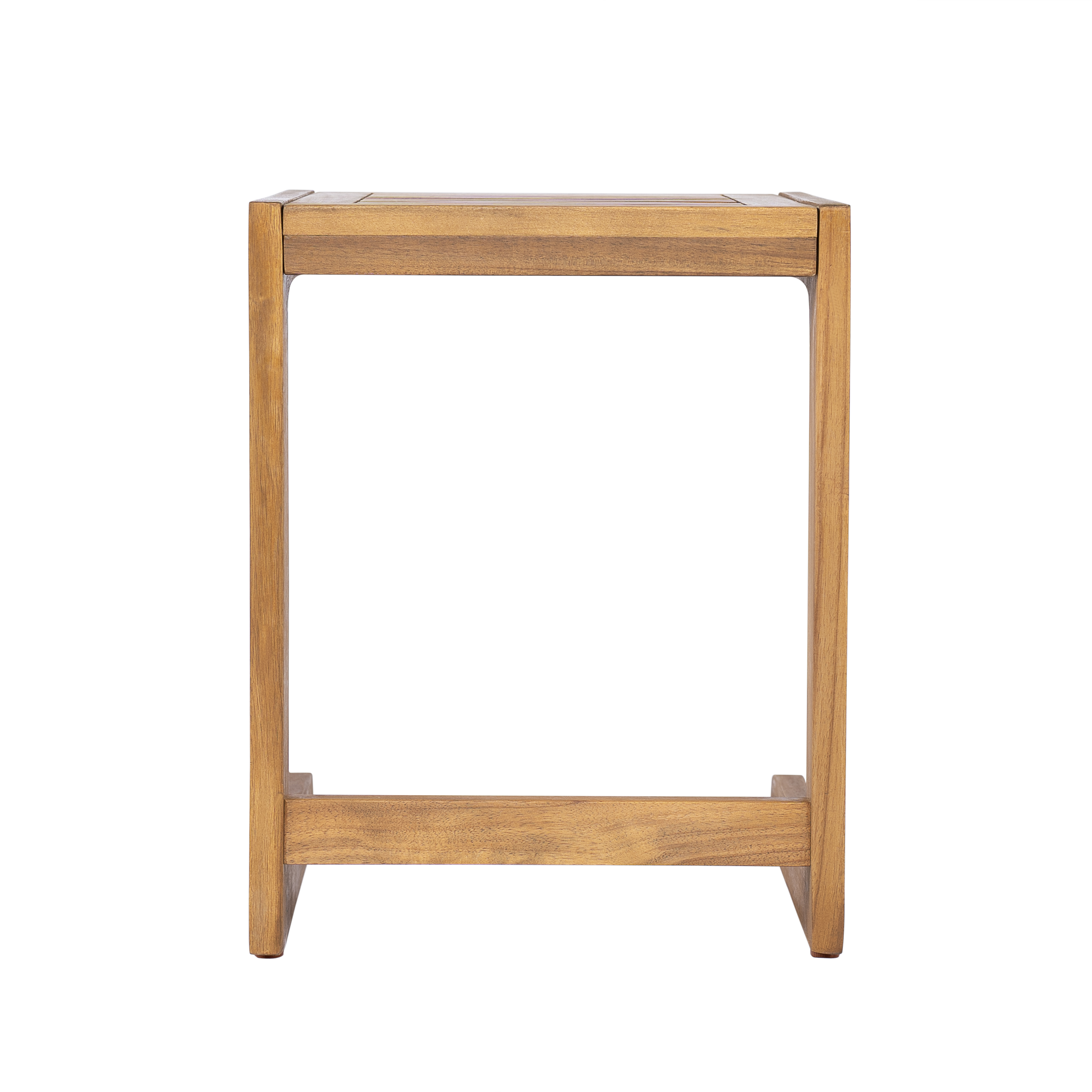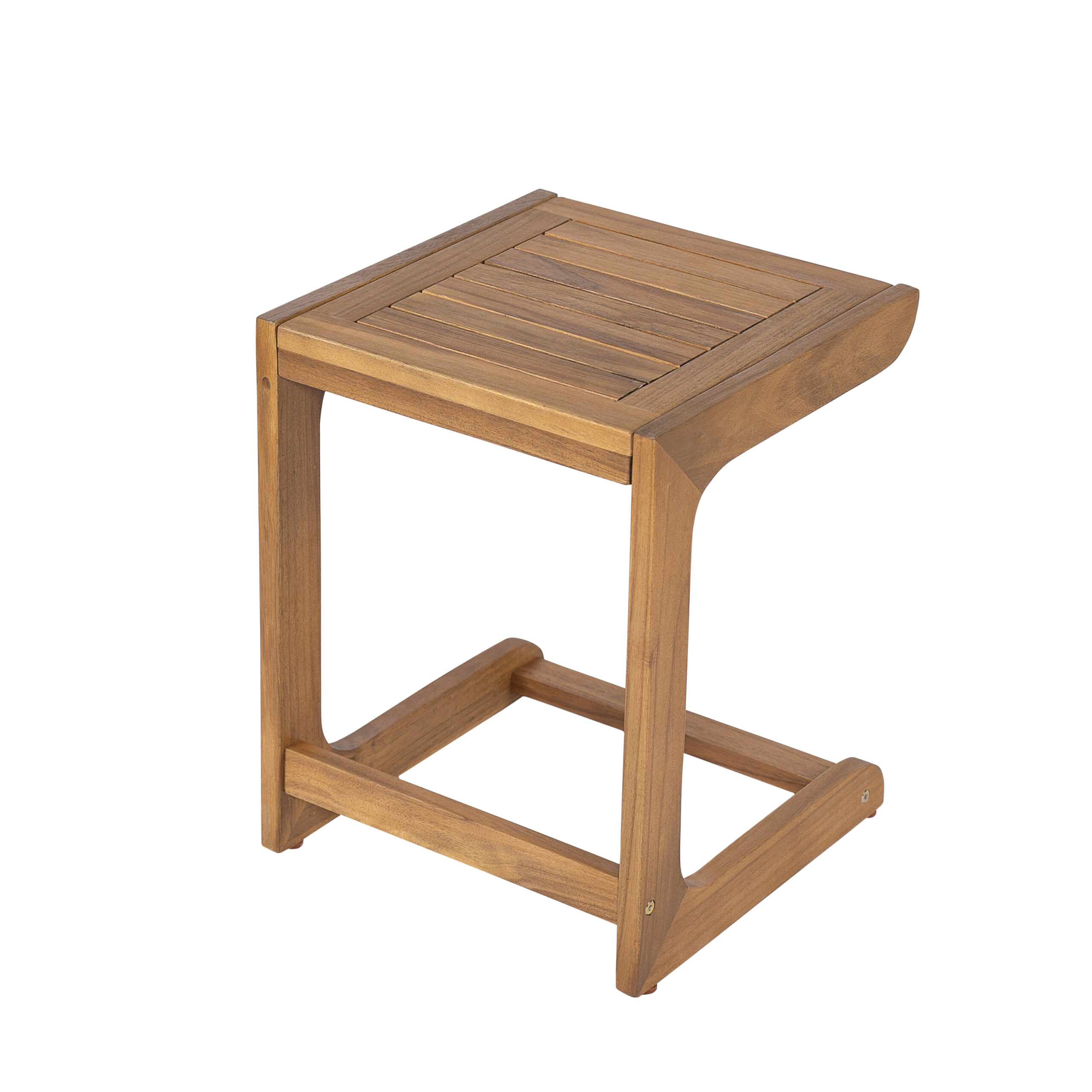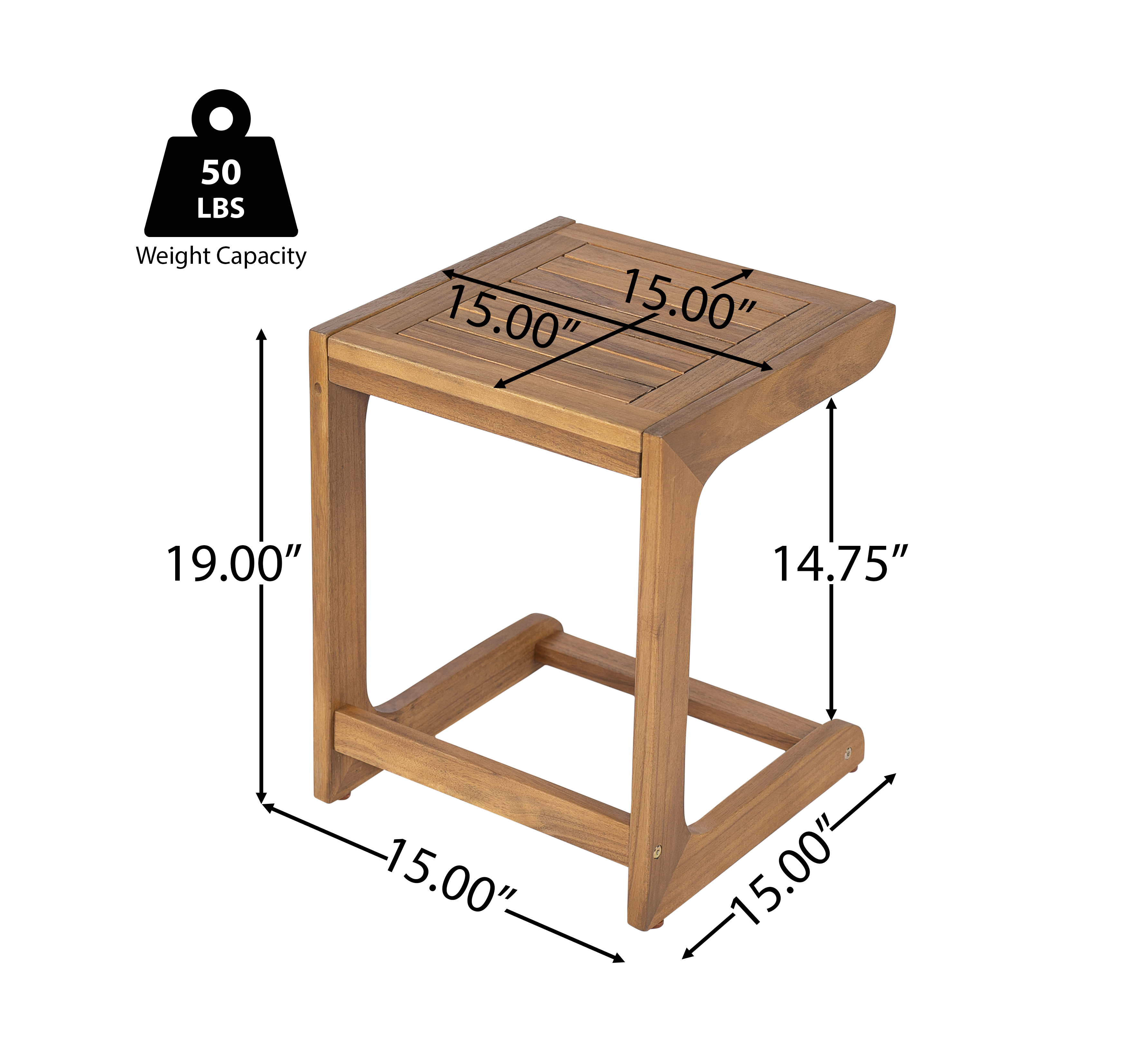 SpecificationProduct Information Product Type :Single Box ProductProduct Name:Ashwell Acacia Wood Side TablePlace of Origin:Viet NamMain Color:TeakMain Material:Acacia WoodProduct DimensionsAssembled Length (in.):15.00Assembled Width (in.):15.00Assembled Height (in.):19.25Product Weight (lbs.):8.38Package SizeLength (in.):20.25Width (in.):20.00Height (in.):4.50Weight (lbs.):11.02Product FeaturesThis Acacia C-shaped side table combines unique design with versatile functionality, making it a standout piece for any living space. Crafted from high-quality acacia wood, a natural material renowned for its durability and beautiful grain patterns that enhance over time, it brings a warm, natural aesthetic to interiors.The table’s minimalist C-shaped design merges elegance with practicality, serving equally well as a sofa-side table, a temporary workspaceThoughtful design details include smoothly rounded edges,allowing effortless mobility across different rooms to adapt to various needs.Acacia wood construction, durable and aesthetically pleasing, C-shaped design, minimalist and versatile.Included: One (1) TableAssembly Required