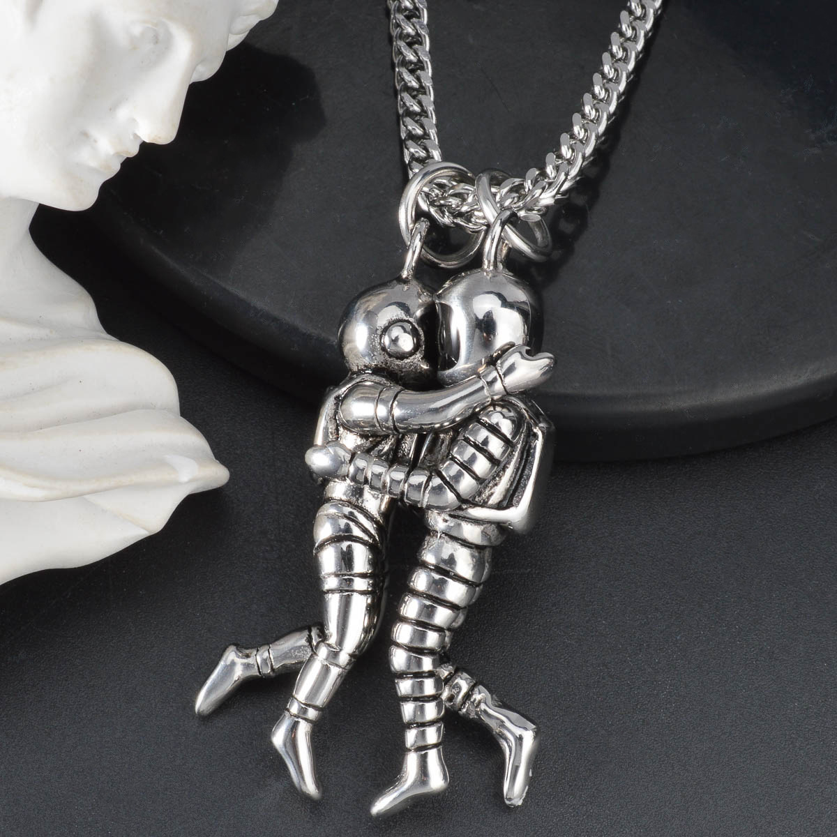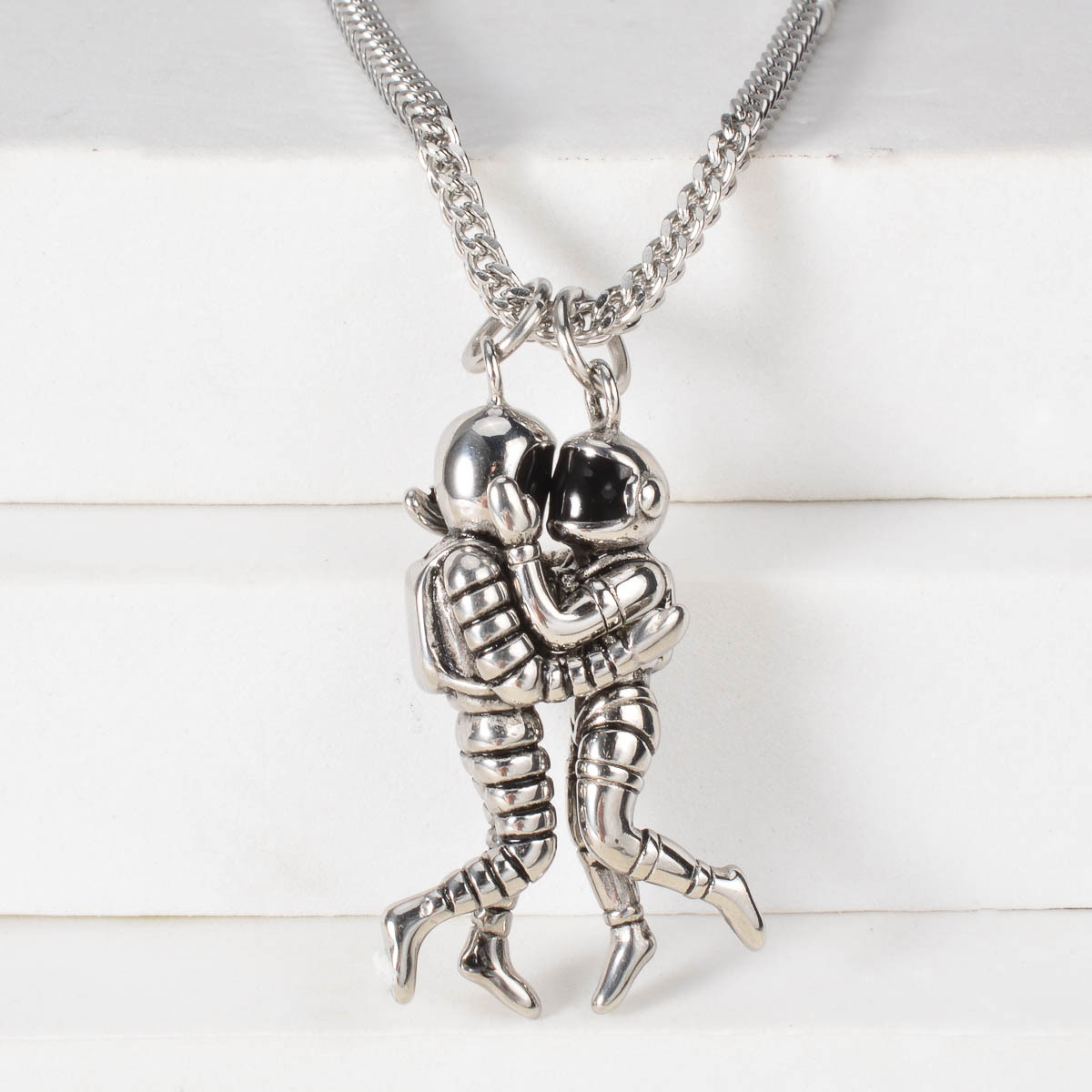 Astronaut Embracing Space Pendant Necklace For Couples