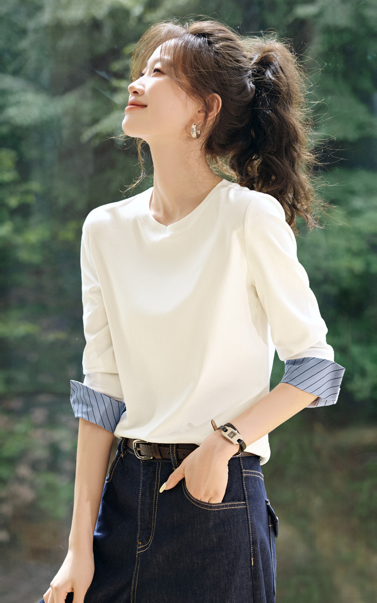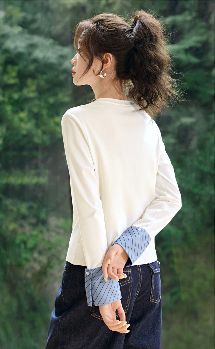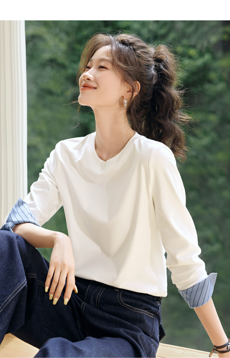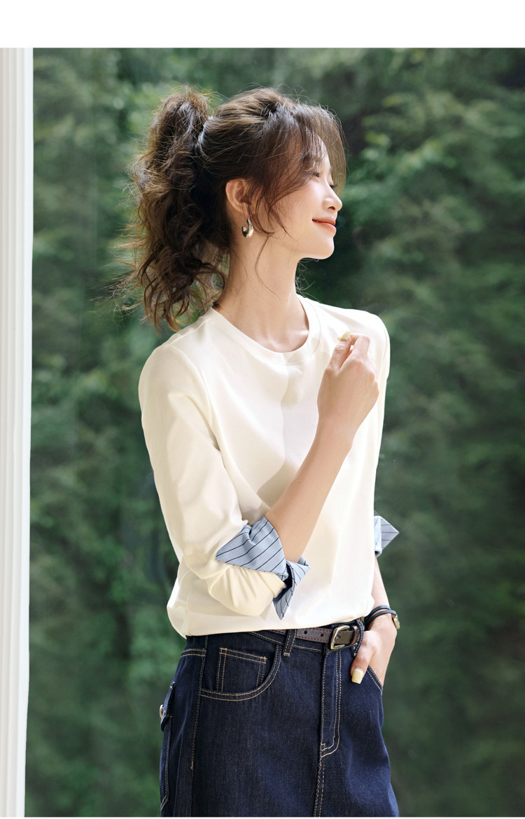 Autumn Round Neck Contrast Color Patchwork Striped Long Sleeve is designed for style, comfort, and everyday use.