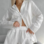 Autumn Winter New Comfortable White Pure Cotton Loose-Fit Long-Sleeve Shorts Set is designed for style, comfort, and everyday use.