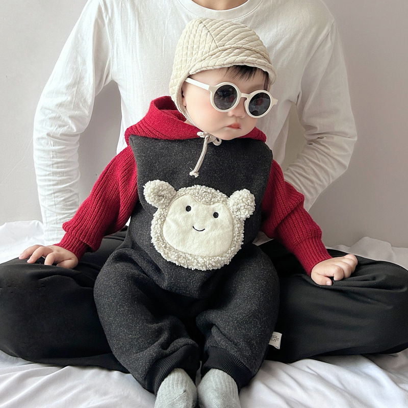 AutumnWinter Fleece-Lined Hooded Jumpsuit With Shoulder Straps