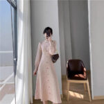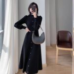 AutumnWinter Knitted Mock Neck Long Sleeve Dress