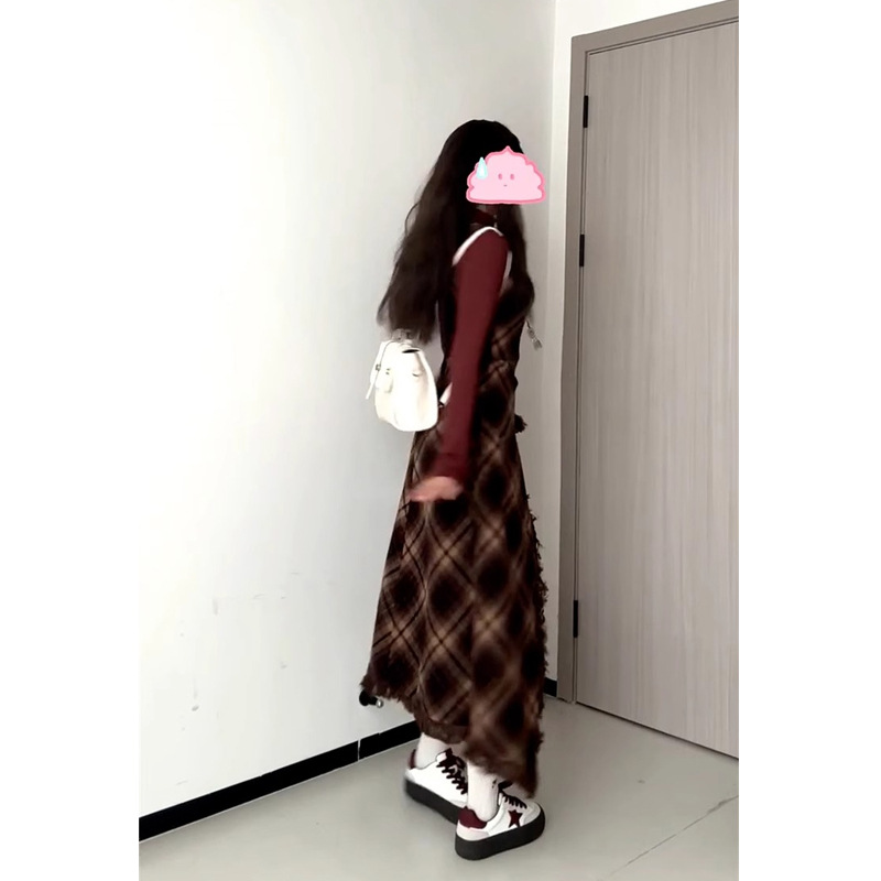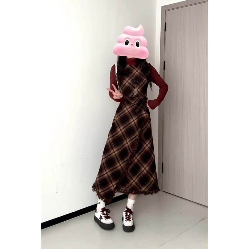 AutumnWinter New Style French-style Sophisticated Red Plaid Dress For Women