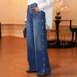 AutumnWinter Niche Design Heart-Shaped Rivet Denim Pants