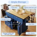 Available TOPMAX Farmhouse Kitchen Island With Drop Leaf And 2 Seatings, Kitchen Table Set With Storage Cabinet, Drawers, Door Shelves And Power Outlet, Blue is designed for style, comfort, and everyday use.