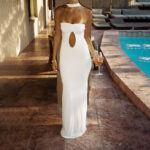 Backless Waist-cinching Sheath-style Solid-color Maxi Dress
