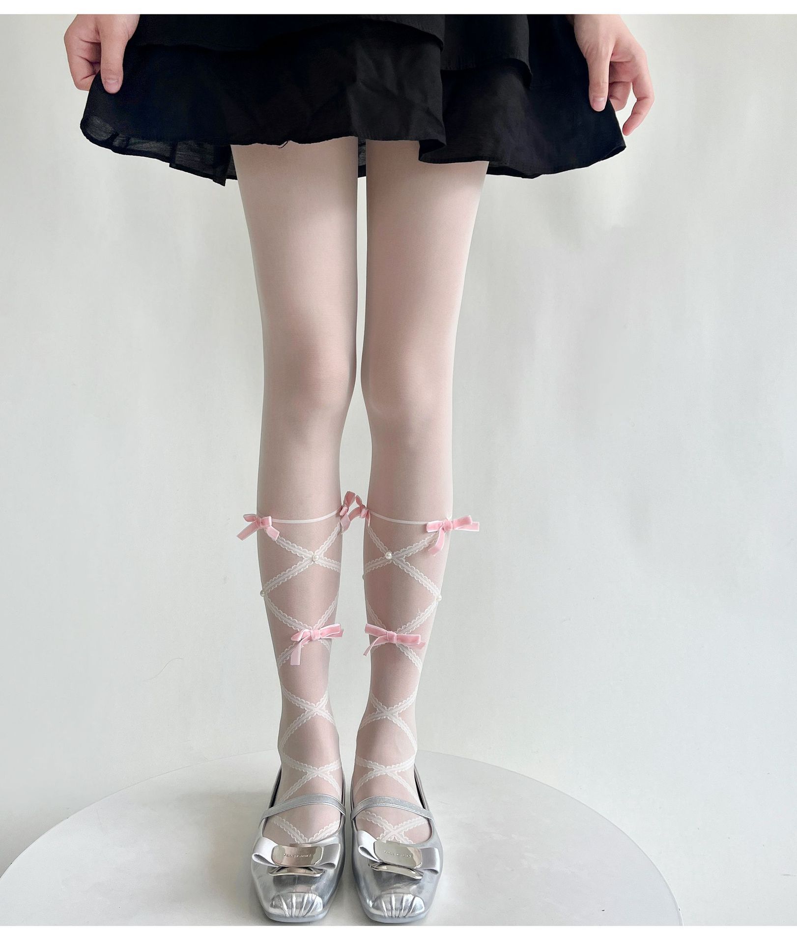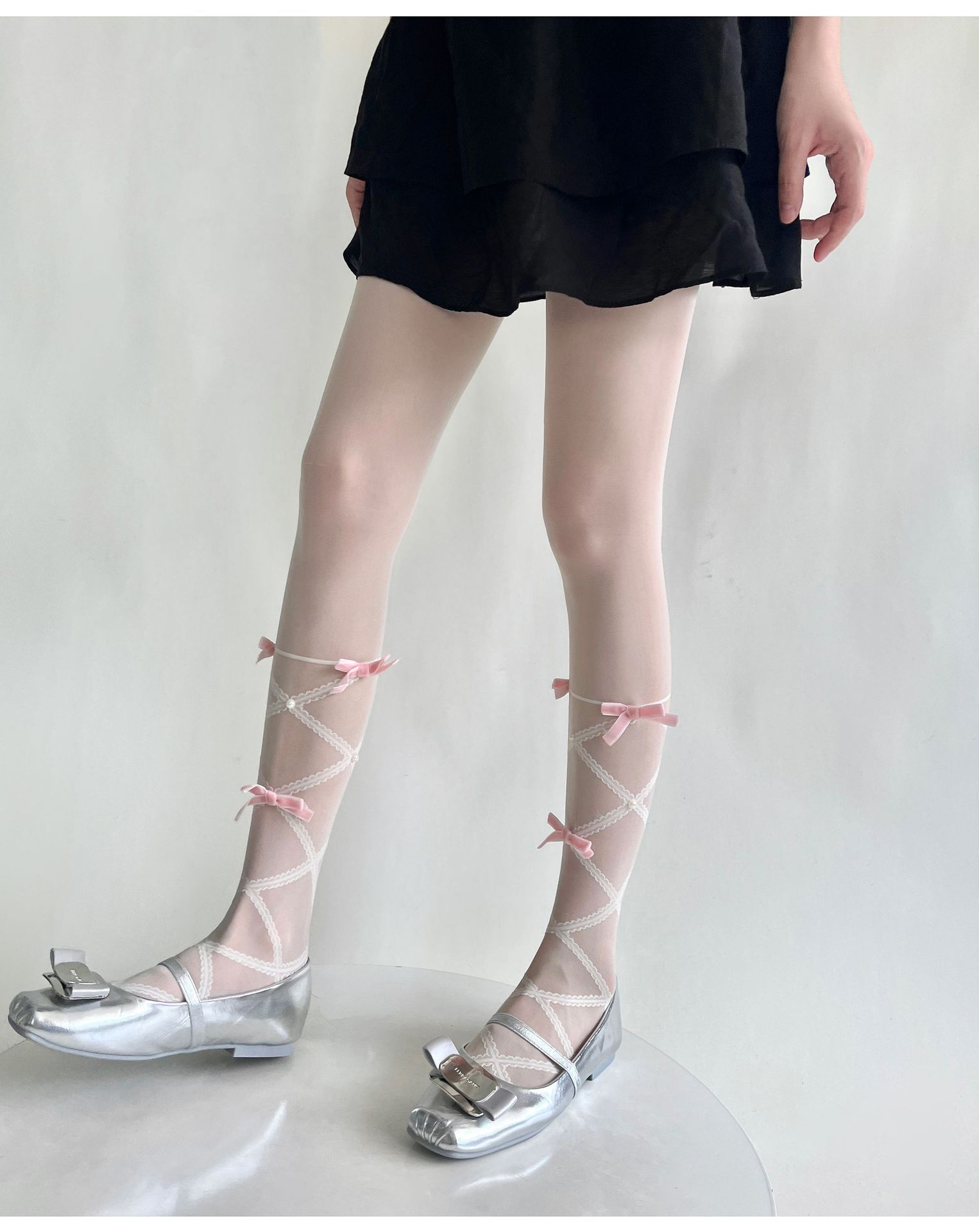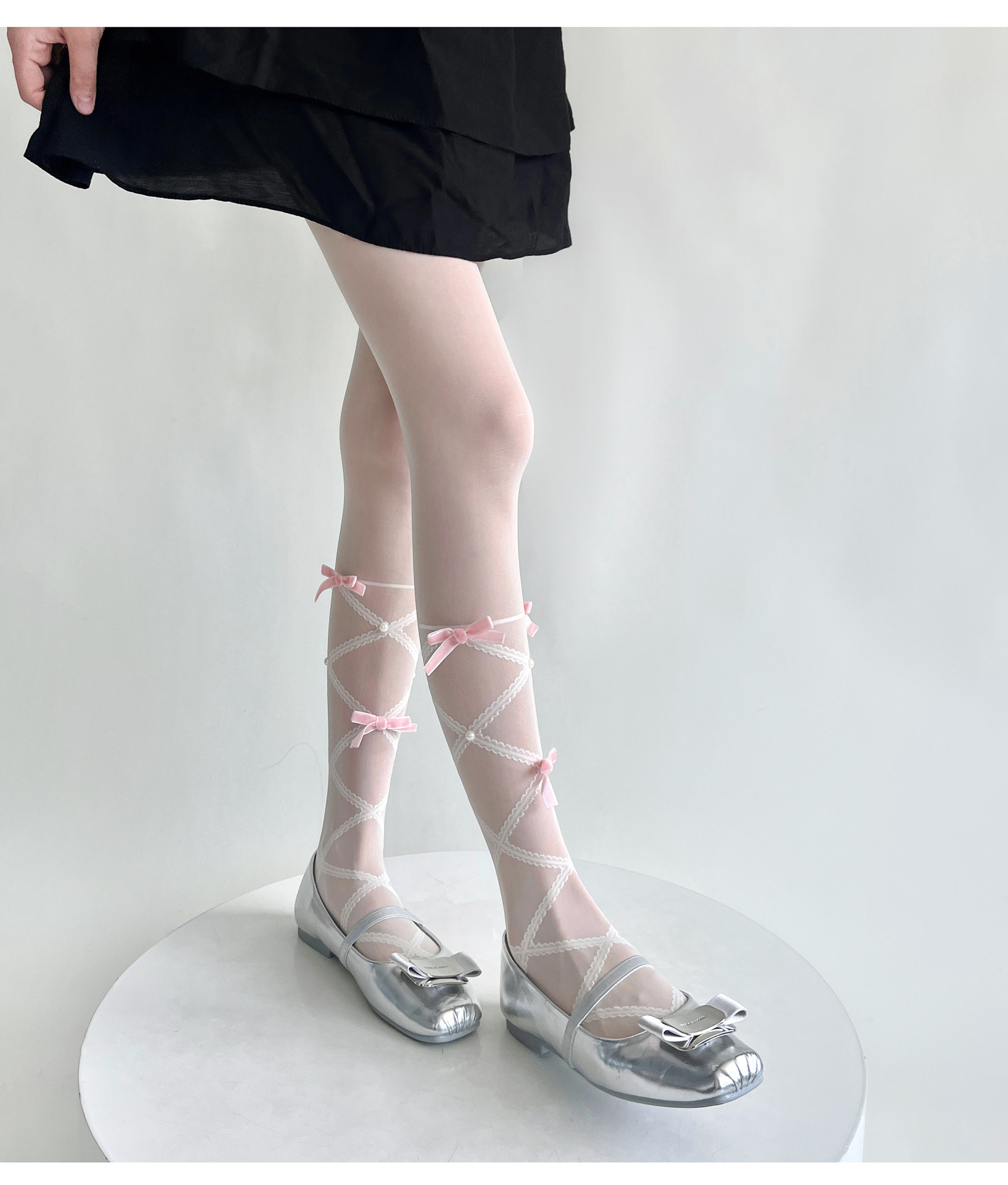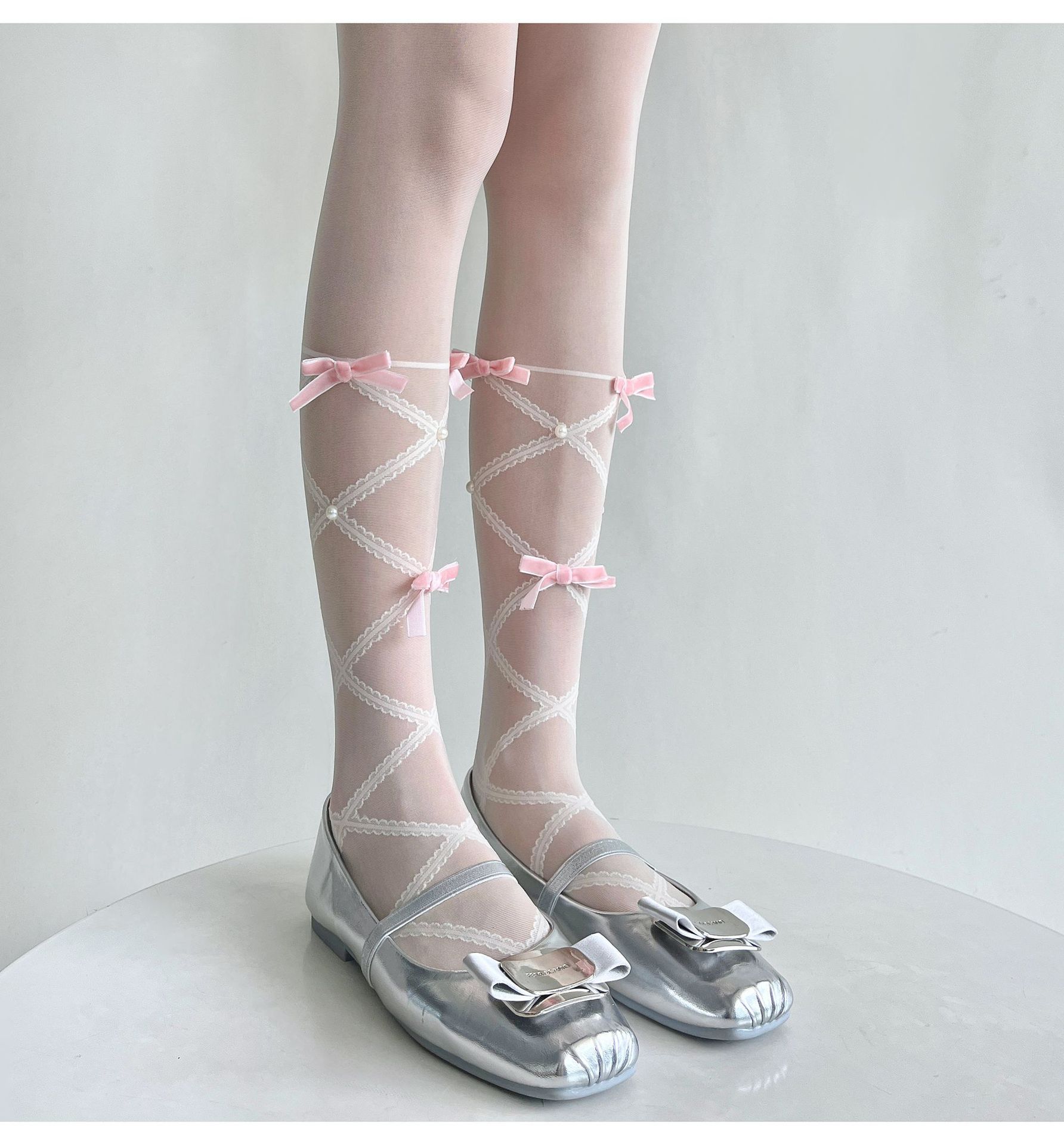 Balletcore Sheer Knee High Socks With Bows, Cute Pearl Lace-Up Calf Stockings, Coquette Aesthetic Legwear For Women is designed for style, comfort, and everyday use.