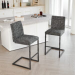 Bar Stool – Speckled Gray Textured Fabric With Vertical Tufted Backrest Sturdy Black Metal Frame & Footrest For Kitchen Island & Home Bar 2 Sets is designed for style, comfort, and everyday use.
