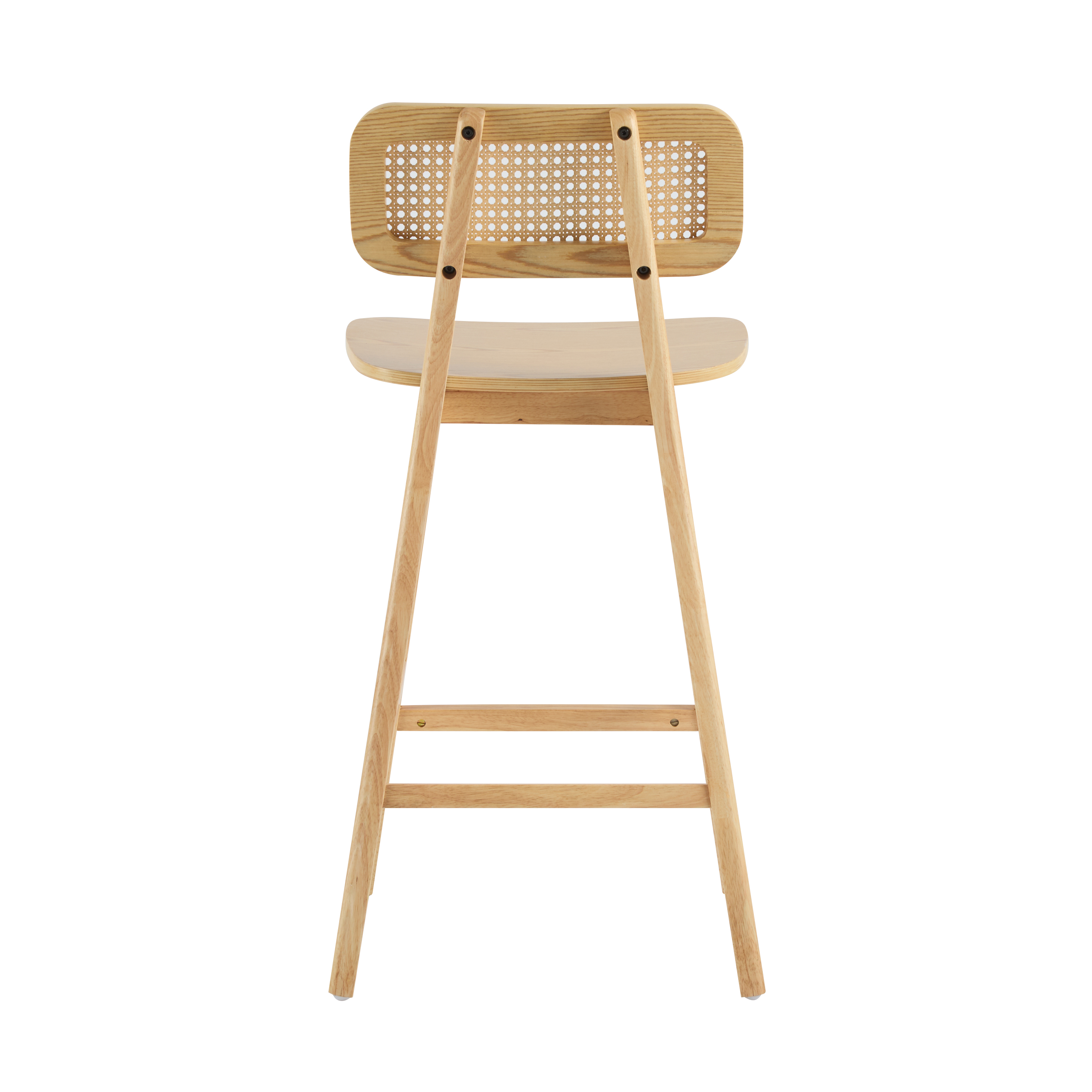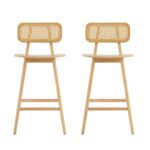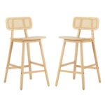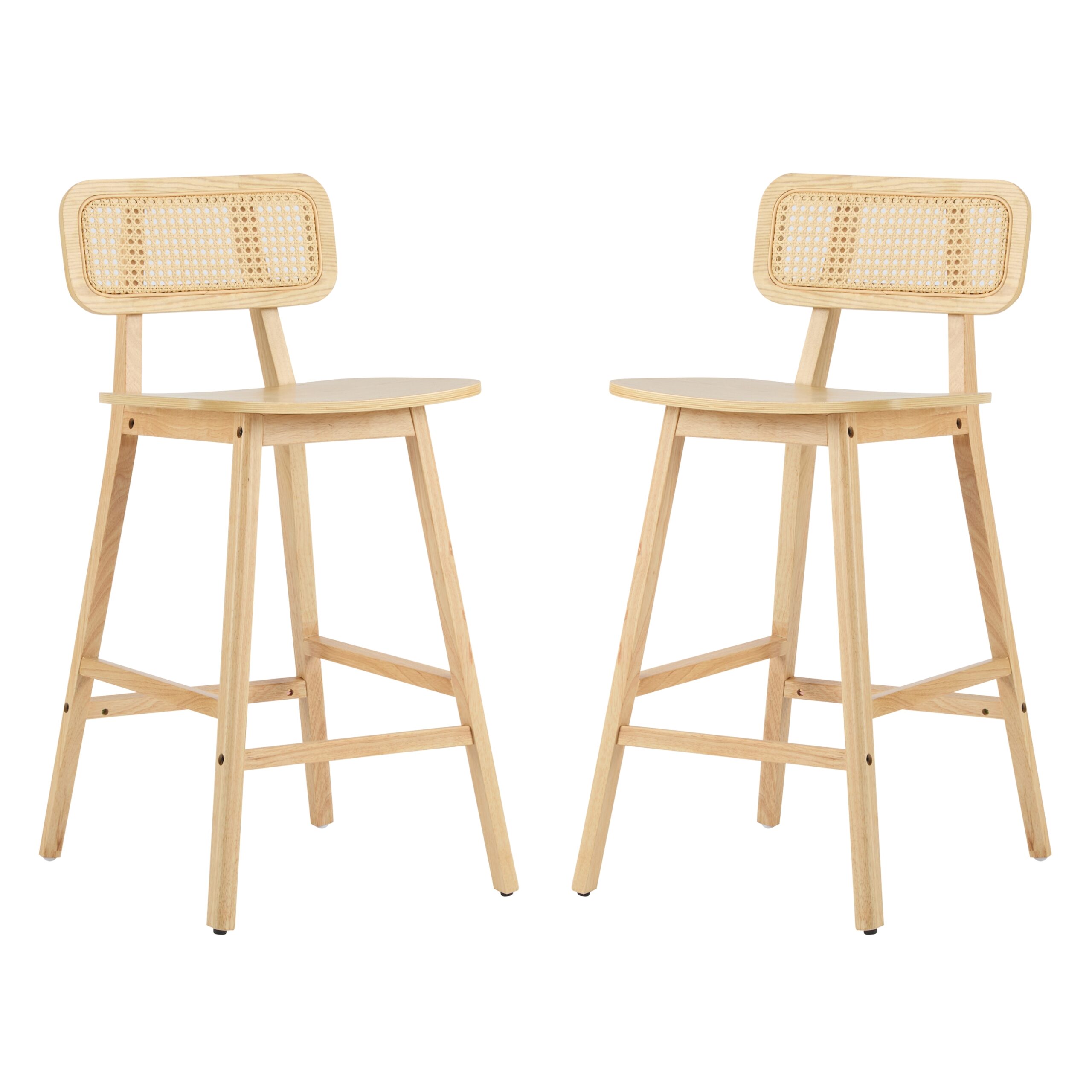 - SpecificationProduct Information Product Type :Single Box ProductProduct Name:Bari Indoor Wood Barstool, Natural Finished, Set of 2Place of Origin:ChinaMain Color:NaturalMain Material:Bent Wood,Rubber WoodWood Type:RubberwoodWood Tone:NatureChair Type:Bar StoolsChair Upholstery Material:RubberwoodChair Care Instructions:Wipe CleanSeating Quantity:Set of 2Product DimensionsAssembled Length (in.):18.00Assembled Width (in.):20.75Assembled Height (in.):36.25Product Weight (lbs.):11.55Package SizeLength (in.):38.50Width (in.):22.75Height (in.):9.25Weight (lbs.):28.88Product FeaturesPremium Rubberwood Frame: Built to last, the robust frame is crafted from high-quality rubberwood, renowned for its strength and stability. This ensures your chair remains steadfast, even with daily use, promising years of reliable service.Curved Seat in Solid Wood: The seat, fashioned from contoured solid wood panels, offers ergonomic support that cradles your body. Its gentle curve ensures maximum comfort, allowing you to relax and enjoy long conversations or meals without discomfort.Rattan-Adorned Backrest: Adding a touch of tropical charm, the backrest is adorned with intricately woven rattan. This natural element not only enhances the chair’s aesthetic appeal but also provides a tactile texture that adds an extra layer of comfort and a touch of warmth to your dining or bar area.Versatile Design: Whether you’re styling a cozy home bar, or a sophisticated dining room, this chair’s versatile design ensures it fits right in. Its elegant lines and neutral color palette make it a versatile addition to any space, enhancing its ambiance with understated luxury.Easy Maintenance: Caring for your chair is effortless. Simply wipe down with a damp cloth to maintain its stunning finish, ensuring it stays looking its best for years to come.Natural Wood Tone Finish: Finished in a warm, natural wood tone, our chair seamlessly blends with any interior decor. Whether you’re styling a rustic farmhouse kitchen, a cozy home bar, or a contemporary dining room, this chair’s neutral palette ensures it fits right in, adding a touch of warmth and sophistication.Included: Two (2) BarstoolsAssembly Required