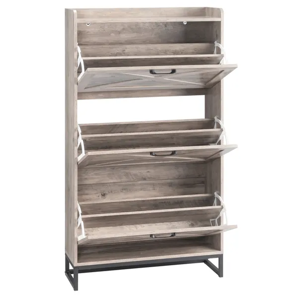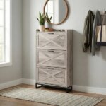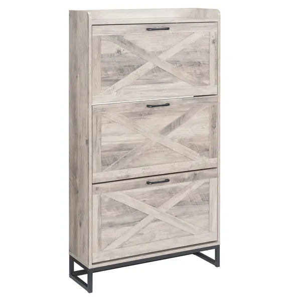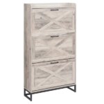 Barn Door Three-drawer Cabinet With Top Panel, Shoe Cabinet, Particleboard, 80x24x145cm, Washed Gray Finish