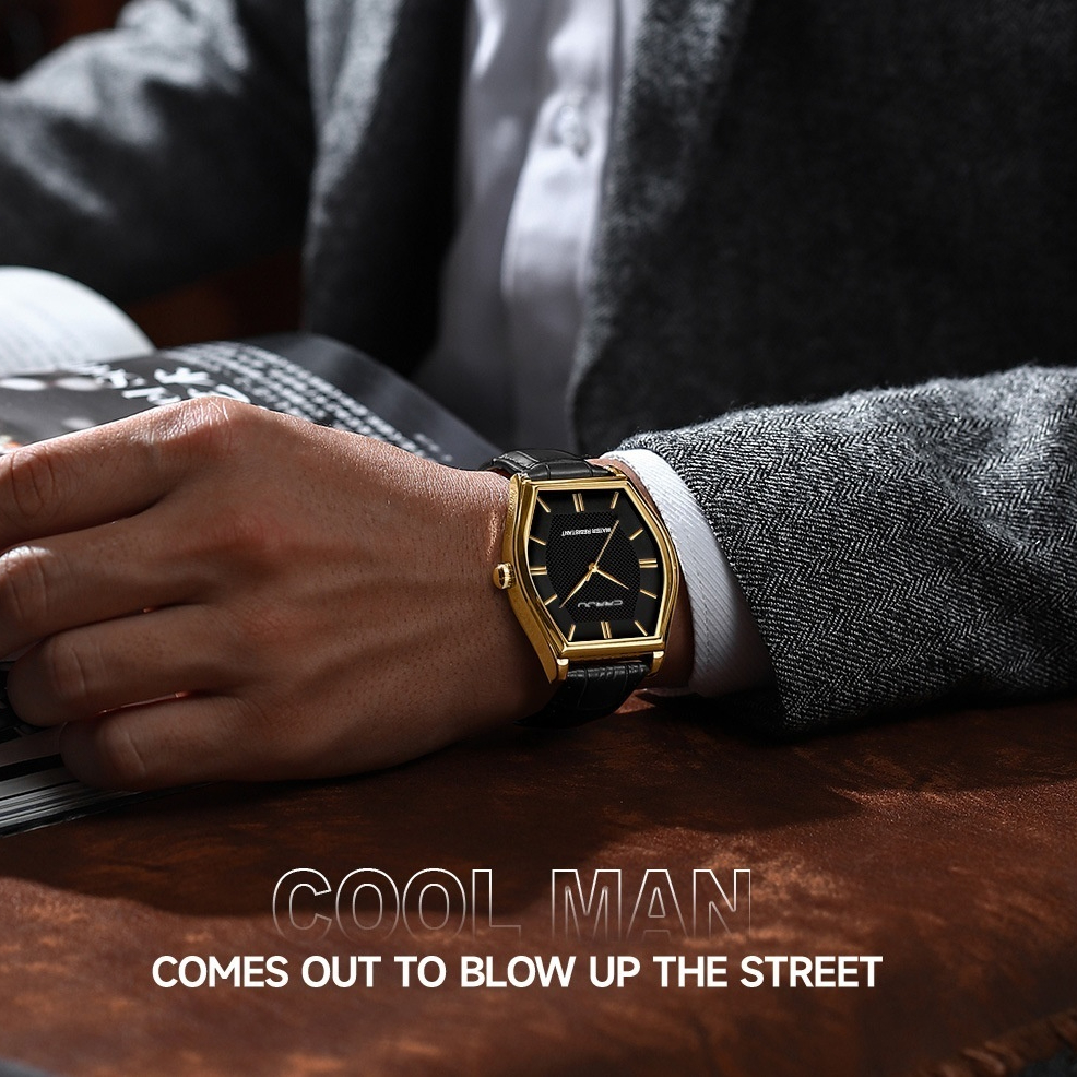 Barrel-shaped Waterproof Leather Watch is designed for style, comfort, and everyday use.