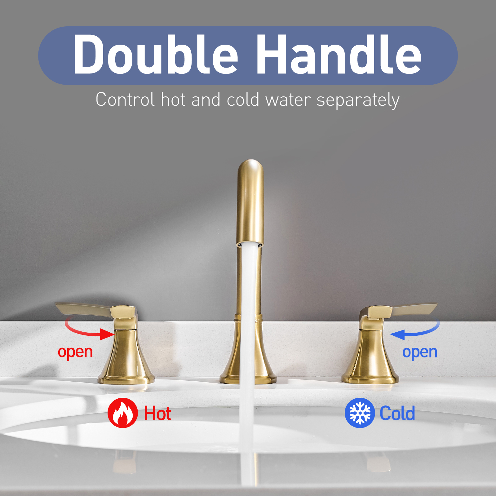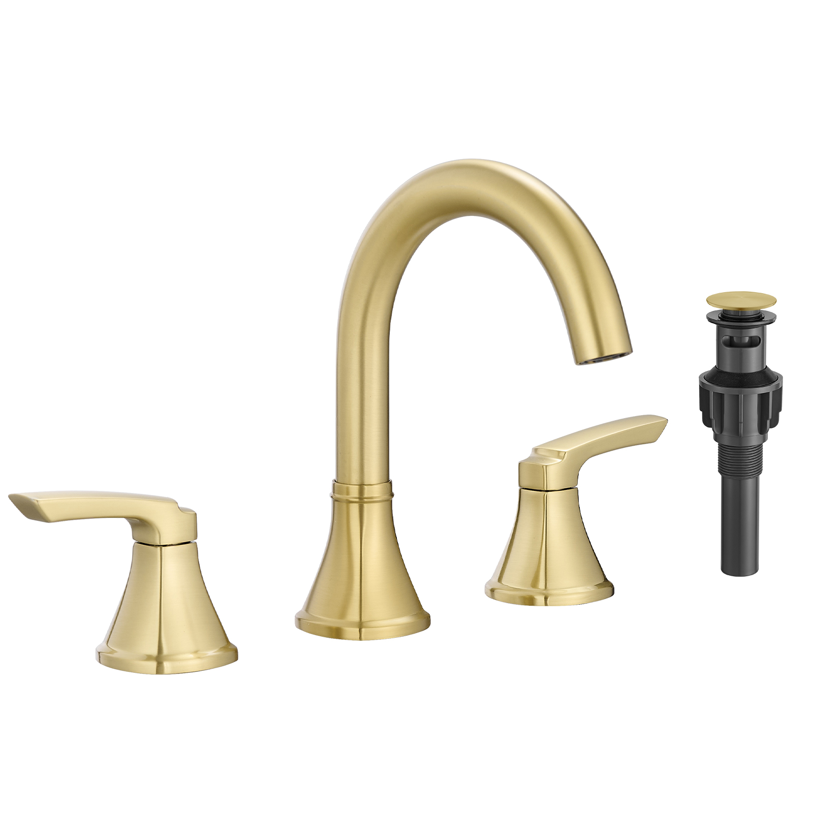 Bathroom Stainless Steel Faucets For Sink 3 Hole Brushed Gold 8 Inch Widespread Bathroom Sink Faucet Double Lever Handle Faucet Bathroom Vanity Faucet Basin Mixer Tap Faucet With Pop-Up Drain